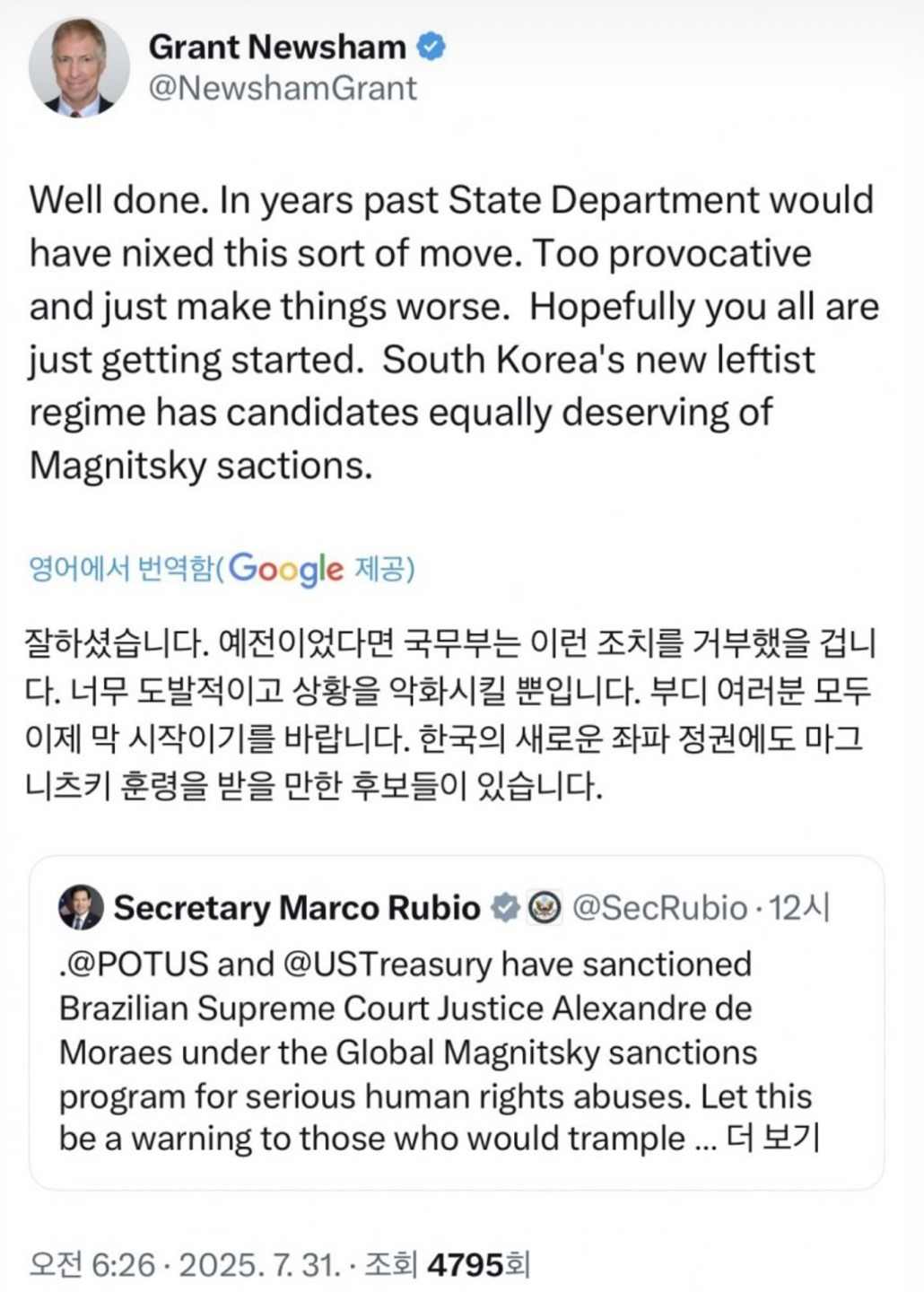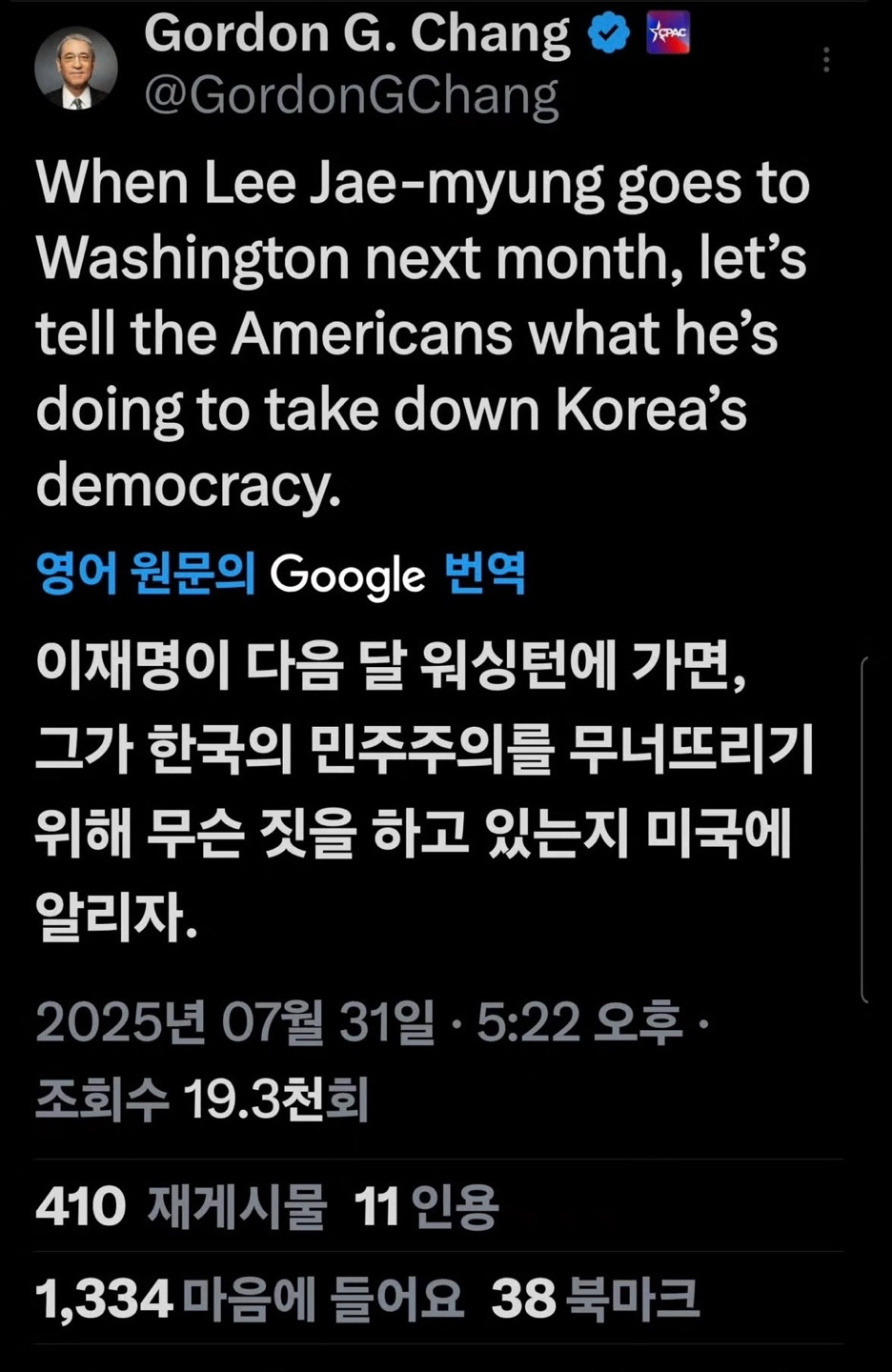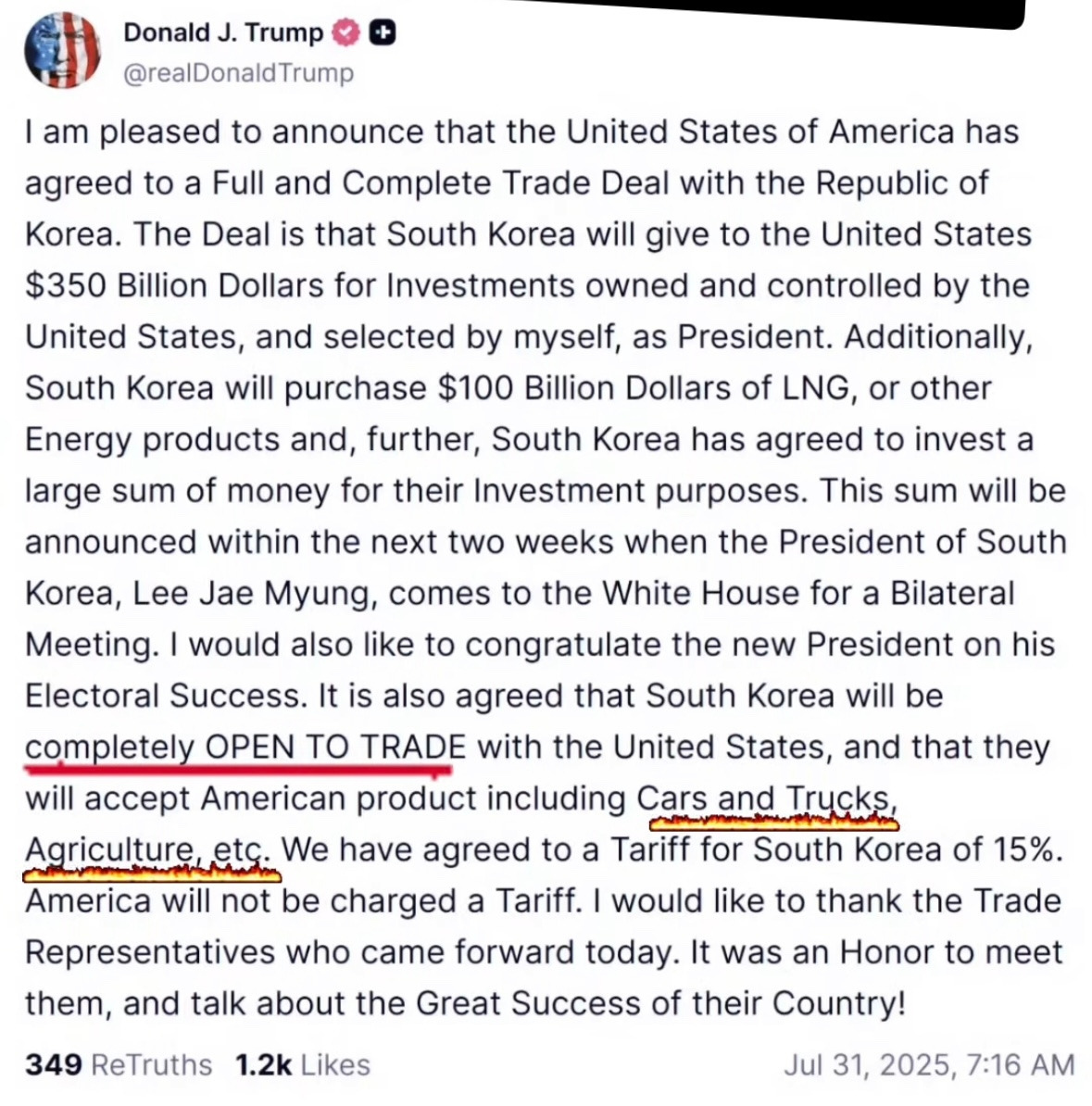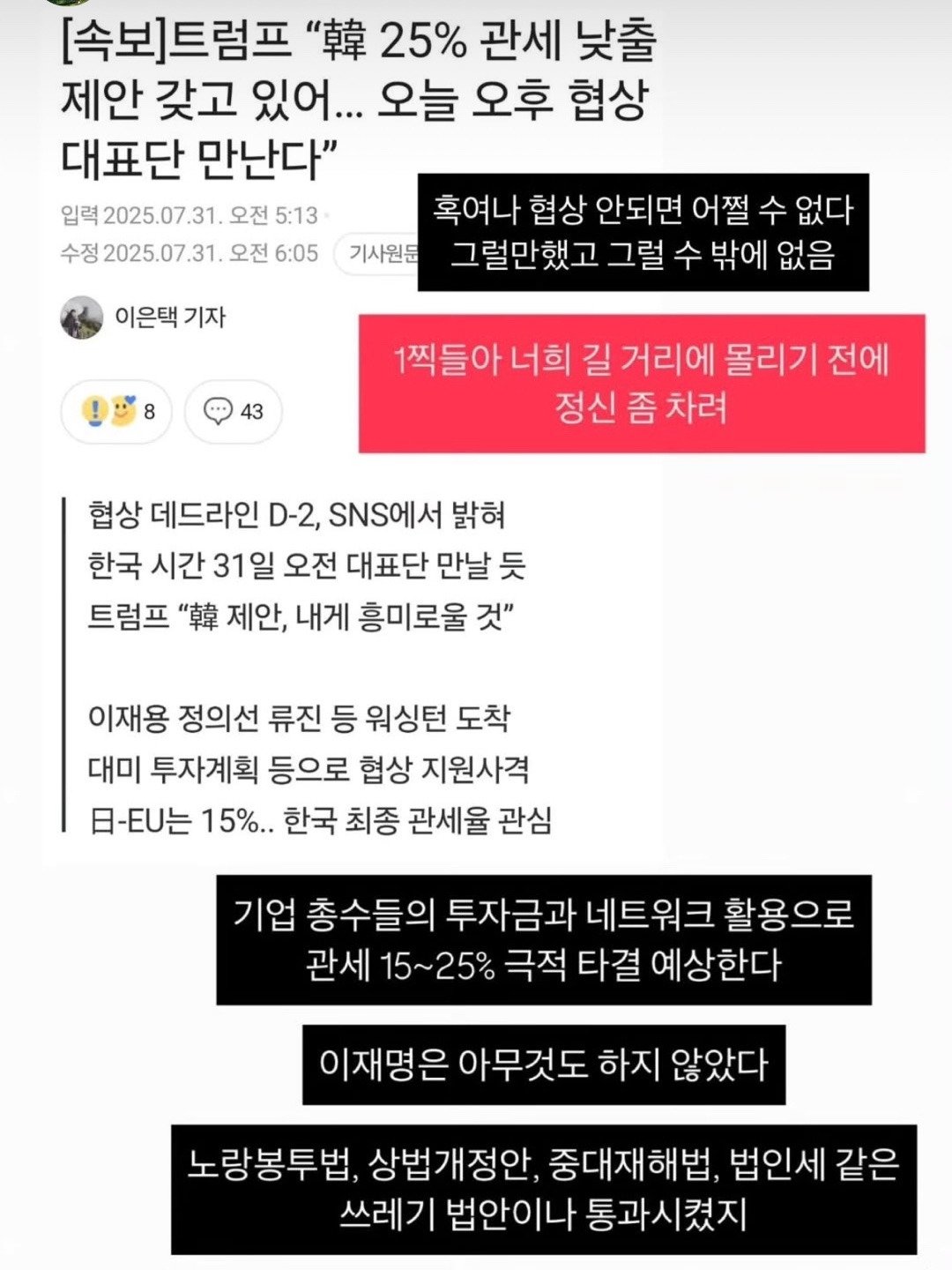 10. 여러분, 상호관세 아니고요. 일방관세에요. 트럼프가 글쓴거 하단에 자료 있습니다. 철강, 알루미늄은 그대로 50% 입니다. 차라리 이재용씨가 대통령 하세요. 이재명은 무능합니다.