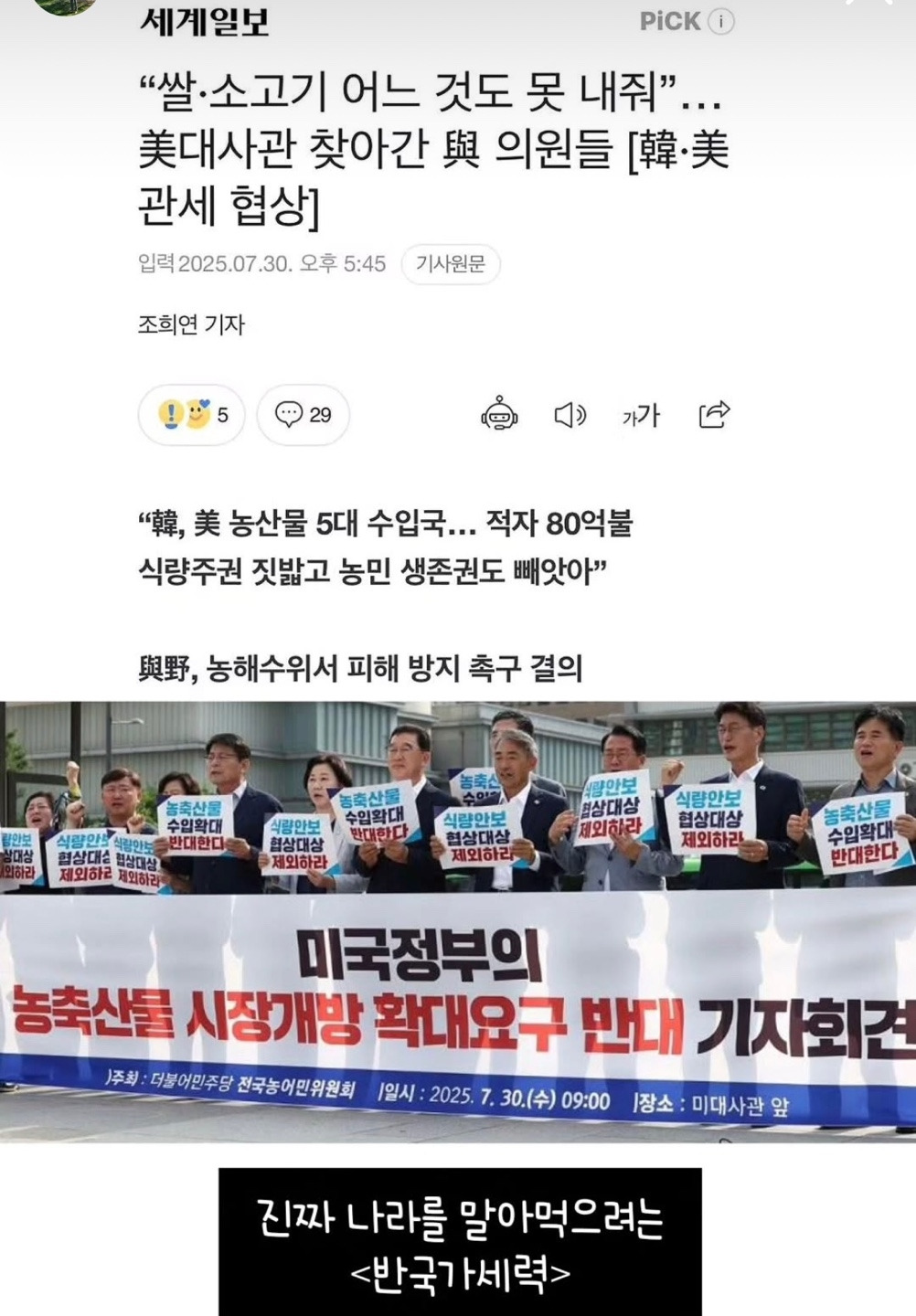 6. 한국이 미국 상품 개방했다. 한국 뉴스와 많이 다릅니다.