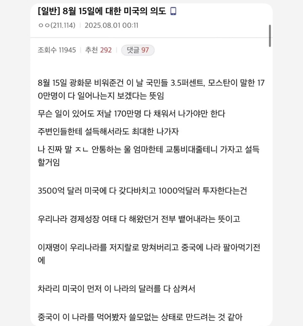 2. 좌파 친구가 물었다. 너는 왜 유투브 뉴스만 봐? 그야 언론이 좌편향 되어 있으니까. 언론이 좌파에 잠식되었으니까. JTBC가 중국 텐센트 자본 천억이 있으니까. 윤석열의 업적은 비춰주지 않으니까. 악마화만 하니까. 언론이 부정성거, 민주당의 패악질은 침묵하고, 이재명 찬양만 하니까. 공정하고 정직하게 보도를 안하니까. 탄핵에 재미 들어서, 권력자를 끌어내리기 위한 광기에만 물들었다. 나라가 공산 체제에 넘어가고 있는데 다들 그건 중요하지 않고 관심이 없다. 계엄을 통해서, 자신의 희생을 통해서 나라의 위기상황을 알렸던 것인데. 계엄령이 아니였으면 부정선거, 29번의 줄탄핵, 입법, 사법의 독재, 국민의힘의 정체, 민주당의 패악질을 국민들이 과연 알았을까. 윤통은 피를 통하는 심정이라고 말했다. 제발 내란이라는 프레임에 갇히지 말길. 한국은 중국의 속국이 맞습니다. 독재 공산화의 길로 접어들고 있습니다.