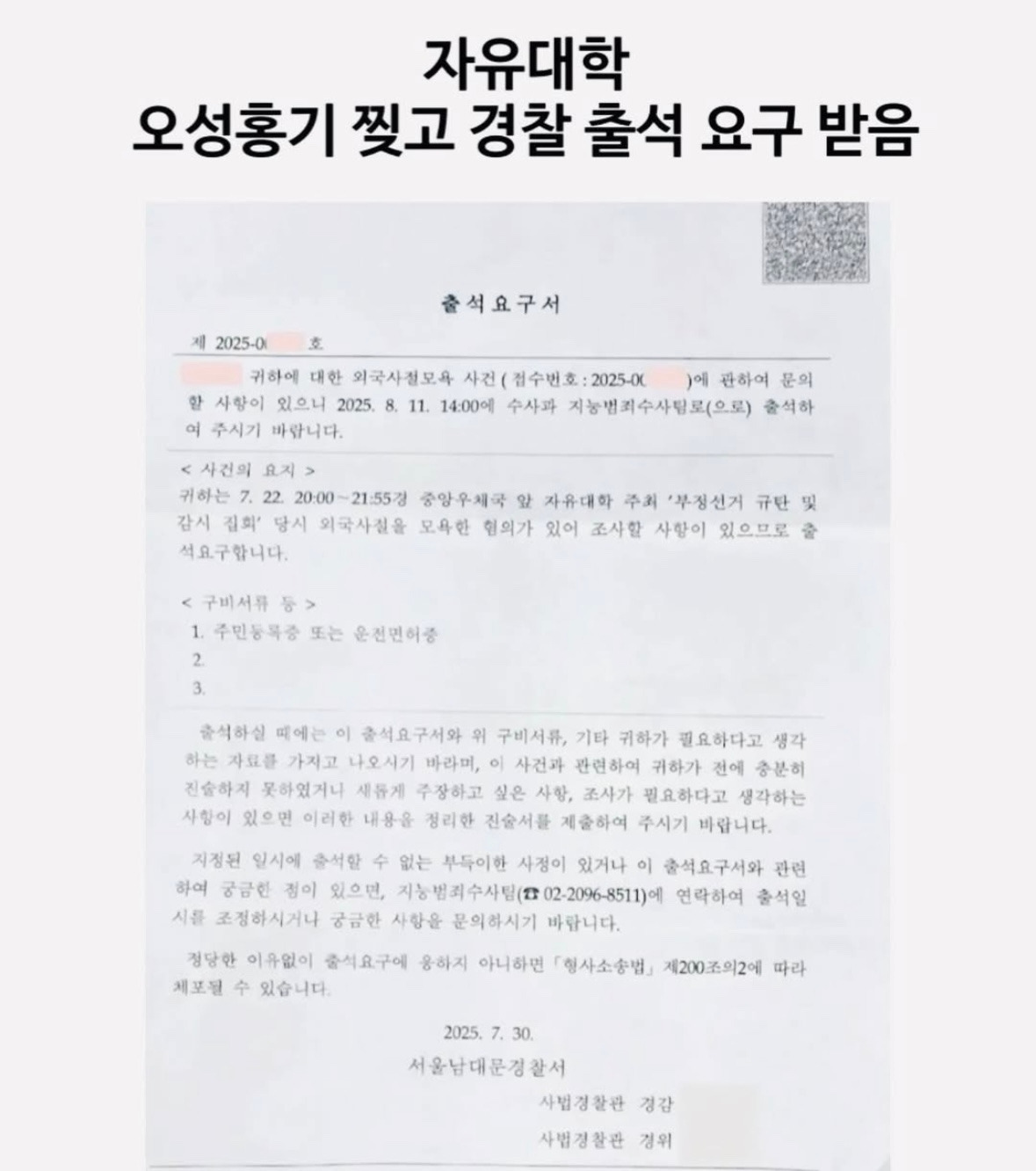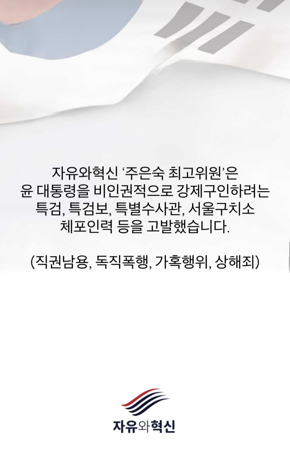 이는 자유대한민국의 헌정질서를 짓밟고, 헌법과 법에 의해 세워진 정당한 국가기관을 교란시키는 것으로써, 내란을 획책하는 명백한 반국가 행위입니다.