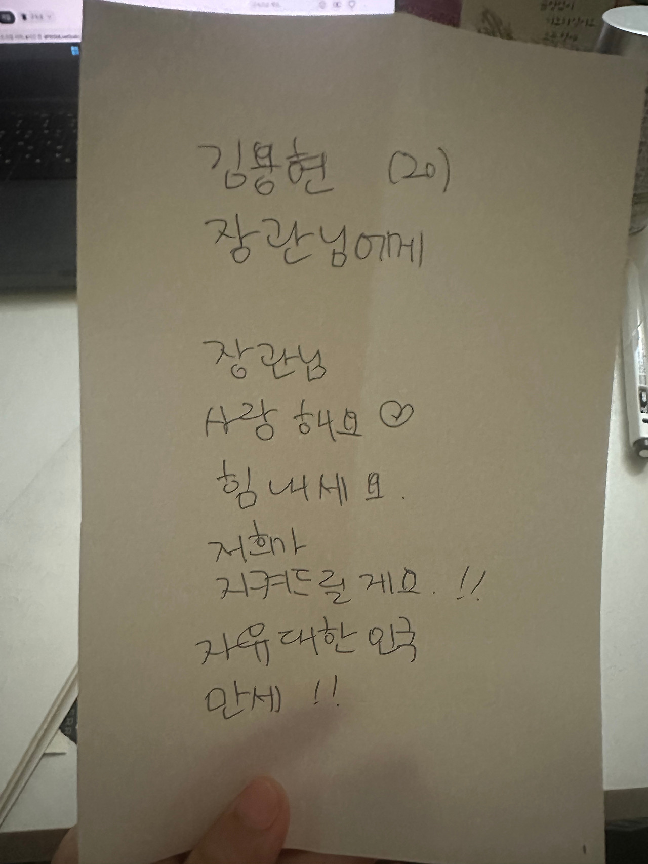 자유대한민국을 위해 저는, 애국자님들 또한 끝까지 투쟁할 것입니다. 저희가 지켜드리겠습니다.