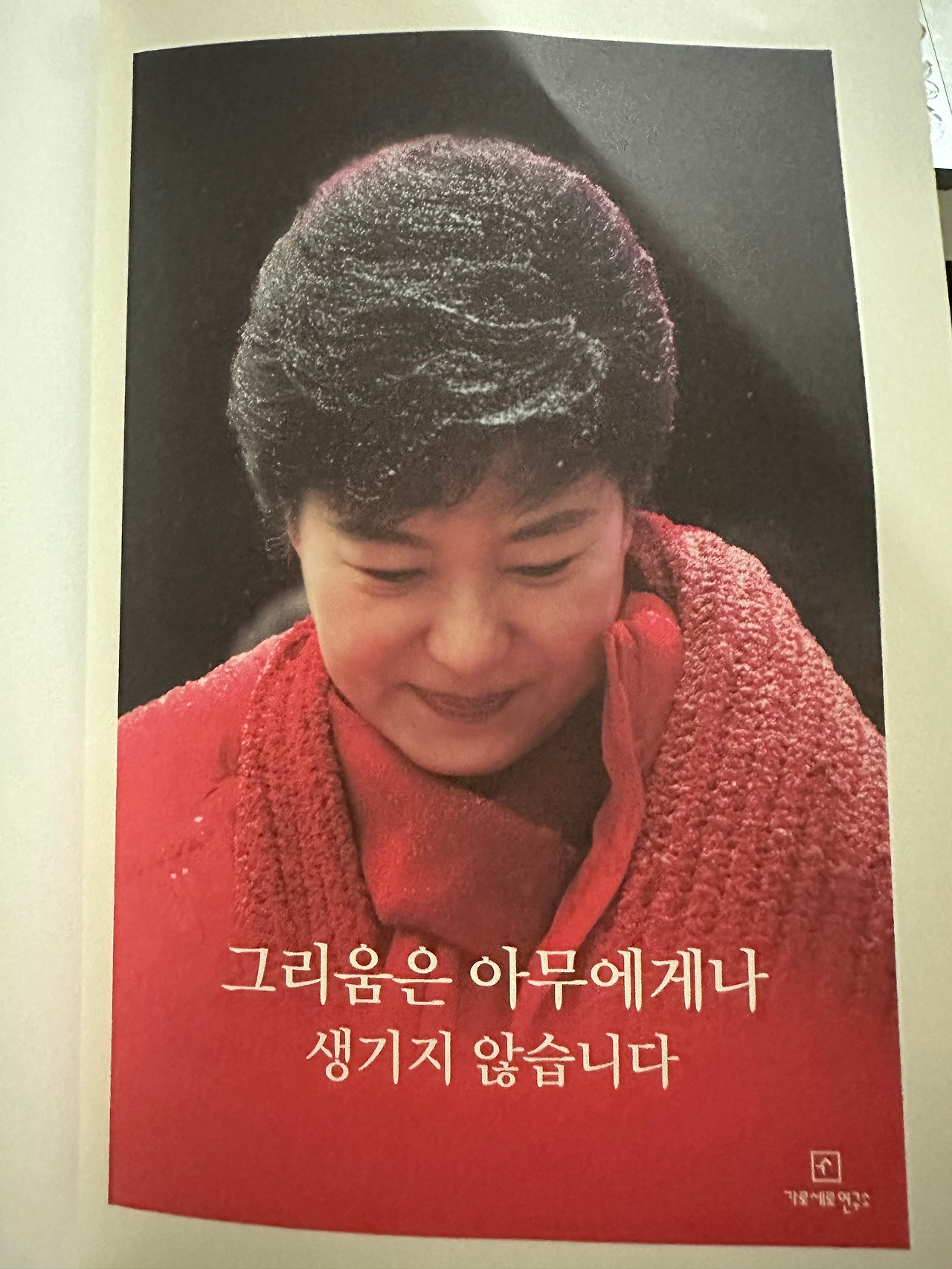 돌아보면 저의 삶은 늘 공적인 삶이었지 않았나 하는 생각이 듭니다. 대통령의 딸이었고, 어머니를 흉탄에 여읜 후 퍼스트레이디의 삶을 살았으며, 국회의원과 대통령이었던 정치인으로서의 삶, 모두 평범하지 않았습니다. 정말이지 단 한 번도 소소한 행복을 느낄 시간이 없었던 것 같습니다. 하지만 그것도 제가 짊어져야 할 운명이라고 생각합니다.