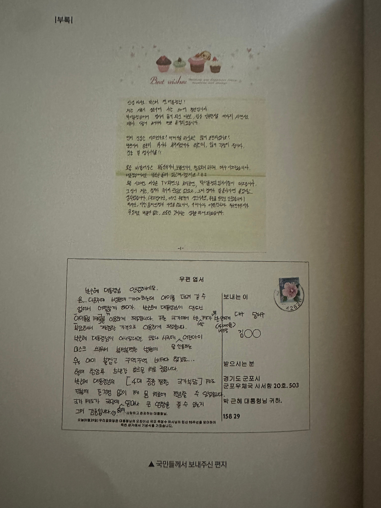 편지를 받으면 편지에서 전해지는 국민 여러분의 따뜻한 마음과 이야기들이 작고 외진 저의 이 공간을 가득 채우곤 하였습니다.