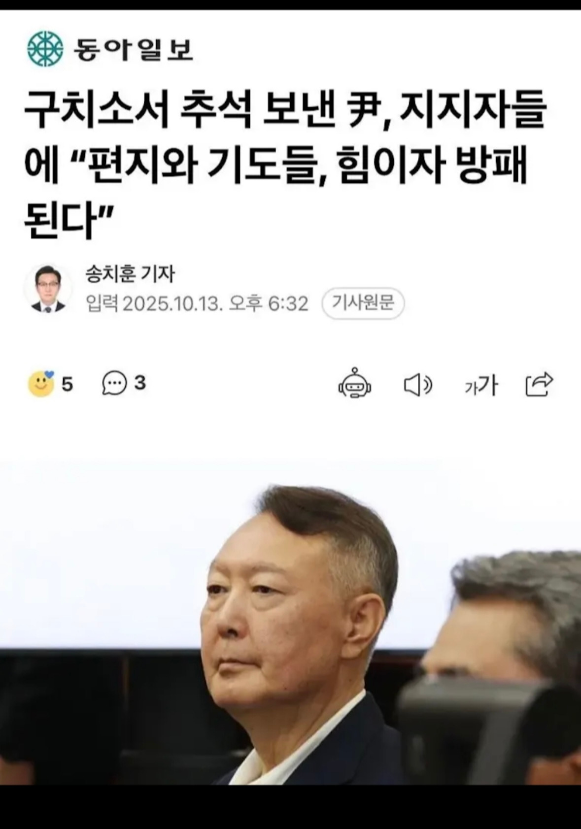 윤석열 대통령님 접견 중 말씀을 전합니다.