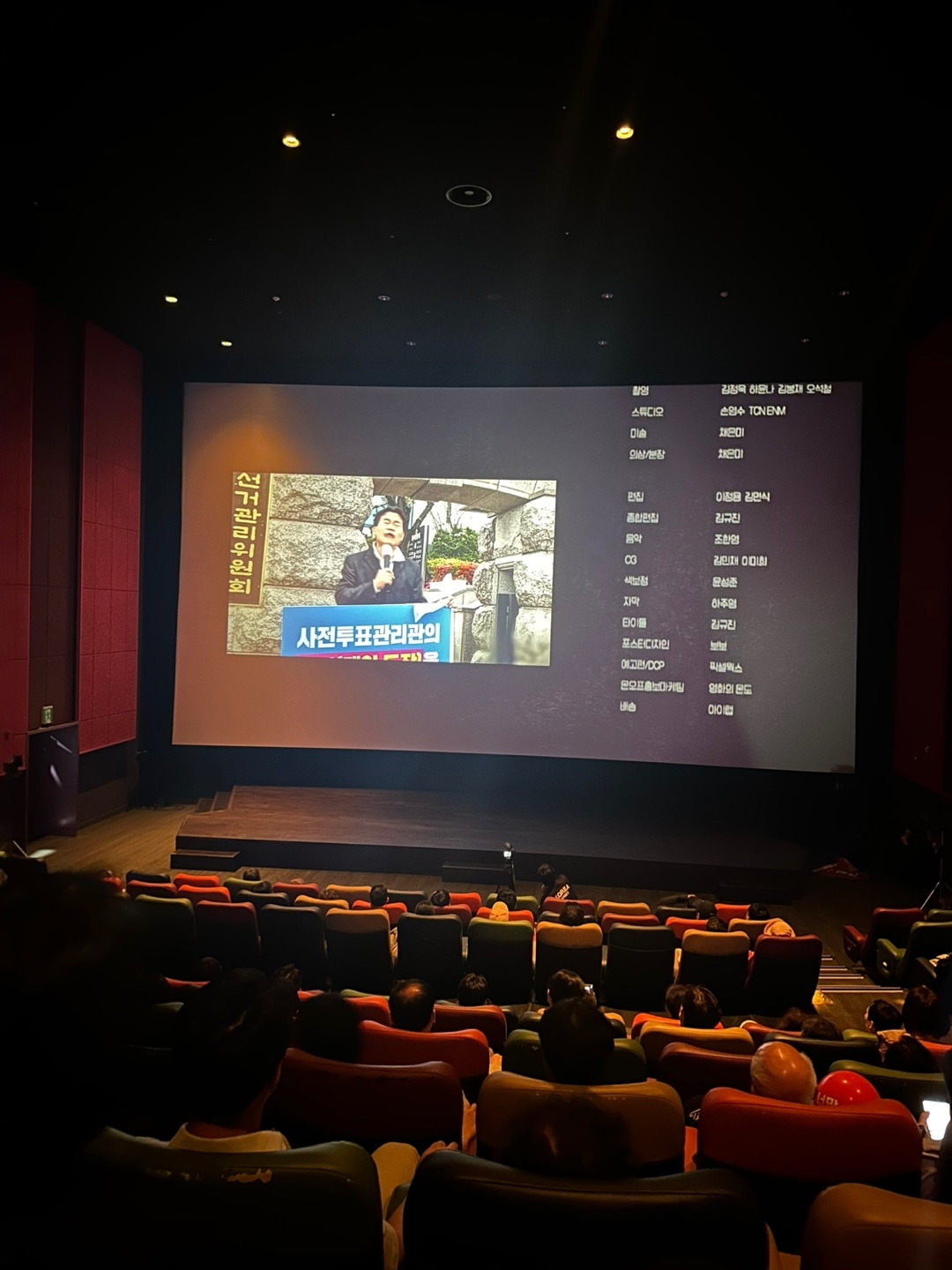 오늘은 혼자서 동대문 메가박스에서 상영하는 영화 <부정선거 신의 작품인가>시사회를 방문하였다. 선선하고 화창한 날씨 덕분인지 동대문역사문화공원역과 DDP에는 인산인해를 이루었다. 9층에 위치한 영화관을 도착하자 <부정선거 신의 작품인가>의 포스터 벽 현수막이 크게 설치되어 있었다. 그 앞에는 ’부정선거 너만 몰라‘라고 적혀있는 빨간 막대풍선을 젊은 청년들이 나누어 주고 있었다. 청년들은 환한 웃음으로 관객들을 반갑게 맞이하여 주었고 나의 사진촬영 부탁에도 흔쾌히 고개를 끄덕이며 열정적으로 찍어주었다. 이렇게나 많은 청년들이 부정선거에 관심을 가지며 적극적으로 활동에 임해주는 모습을 보니 고마운 마음과 대한민국의 희망을 볼 수 있었다. 상영관에 들어가자 30분 일찍 왔는데도 불구하고 자리는 만석이었다. 상영시간이 다 되어가자 이영돈 PD와 전한길 강사가 입장하였다. 관객들은 환호와 박수로 맞이하였고 인사말을 하는 전한길 강사의 모습을 보니 팬으로서 기쁘고 감격스러운 마음이 들었다. 그리고 약 2시간가량의 상영시간 동안 나는 경악을 금치 못하였다. 전자개표기 조작에 LG, 화웨이, 텐센트 즉 중국 개입이 있다는 의문점과 사전투표율보다 실제 투표자 수를 부풀리는 장면은 암담한 부정선거의 현실을 면밀히 보여주고 있었다. 또한 사전투표에만 민주당 지지율이 높은 조작의 결과는 매일 로또가 당첨되는 확률과 10경 분의 일의 확률을 가지고 있다는 것이다. 이와 같이 부정선거는 범죄이자 사기이며 미국을 포함한 전 세계 이슈이다.