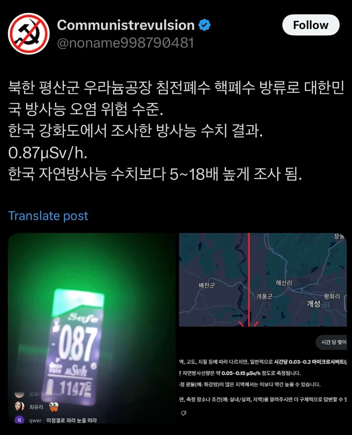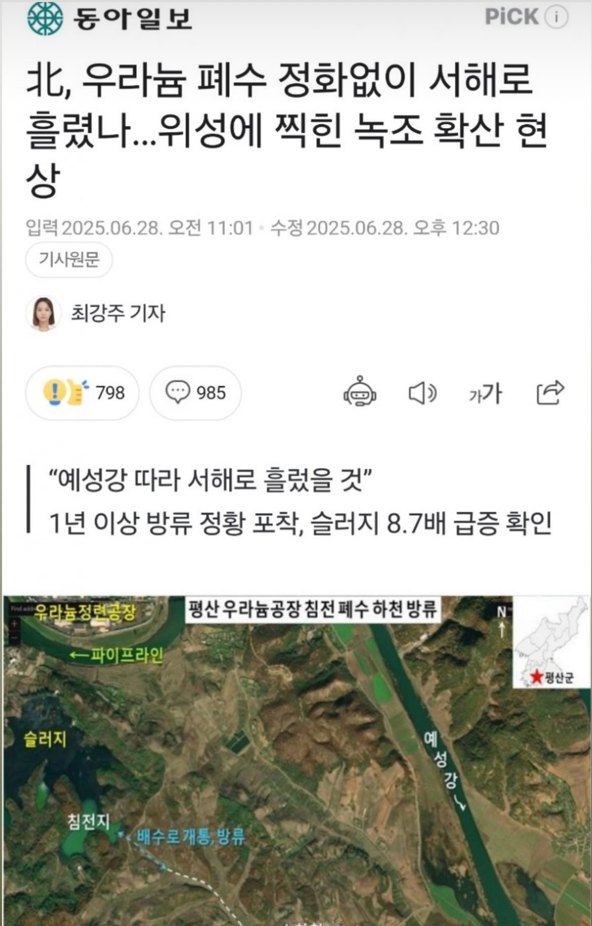 그리고 얼마 전 기사 하나를 접했는데 내용은 이러했다. '북한 평산 우라늄 정련 공장에서 하천으로 방사성 폐수를 무단 방류한 정황이 6월 10일 고해상도 위성사진을 통해 포착됐습니다. 이 폐수에는 핵무기 제조에 사용되는 우라늄 관련 물질이 포함된 것으로 알려졌으며, 유입 시 광범위한 지역에 건강 피해를 유발할 가능성이 제기됐습니다.' (생략) '국회일보는 폐암, 백혈병, 기형아 출산 등 심각한 피해가 우려되며, 해당 폐수가 남쪽으로 유입될 경우 수도권 약 1,000만 명이 영향을 받을 수 있다고 보도했습니다. 전문가들은 "실시간 감시 체계 강화 및 국제 협력이 시급하다"라고 경고했습니다. 수치 또한 높은 수준이라고 나왔다.' 이처럼 심각한 상황임에도 불구하고 언론은 미국산 소고기와 후쿠시마 오염수 방류 때와는 달리 이 사실을 침묵하고 있다. 이와 같이 공정하지 못하고 좌편향 되어 있는 레거시 미디어의 모습을 면밀히 볼 수 있다.
