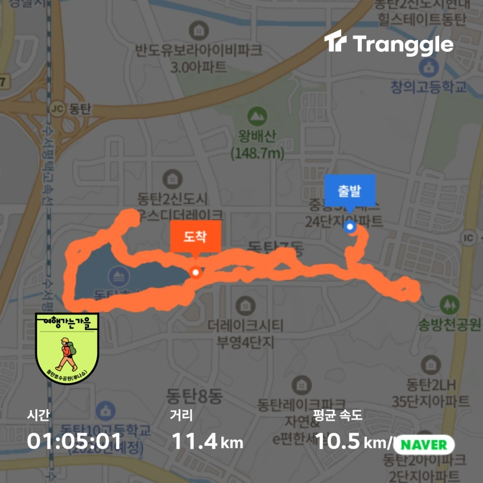 적당한 직감으로 10킬로라 생각하고 멈췄는데 알고 보니 11킬로 넘게 달렸다. 기록을 살펴보니 10킬로를 57분에 달렸다. 기록과 상관없이 그냥 자연 속에 거친 호흡과 한 발짝 내딛는 발자국 소리에 한 몸으로 달렸다. 적당히 즐기며 달리다 보면 어느새 목표지점에 다 달았다.
