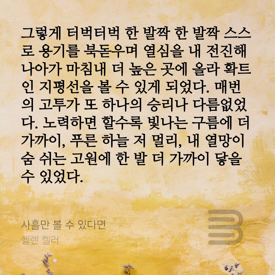 주어진 삶 피하지 말고 힘겨운 고난도 내 삶의 중요한 열쇠를 쥐고 있다는 자세로 피하지 말고 맞서보자.