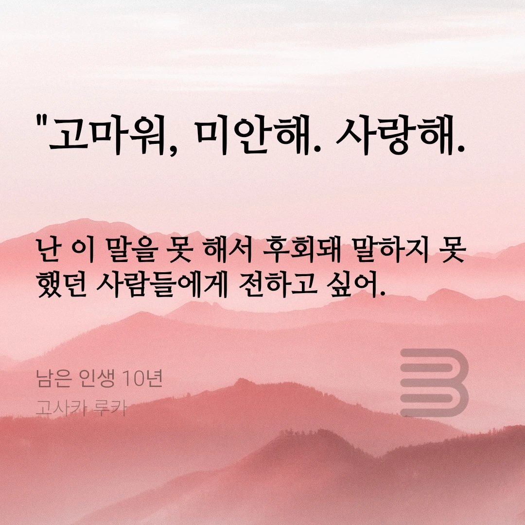 #독서 #인생 #죽음 #가족 #시간 #나답게 #미안해 #사랑해 #고마워