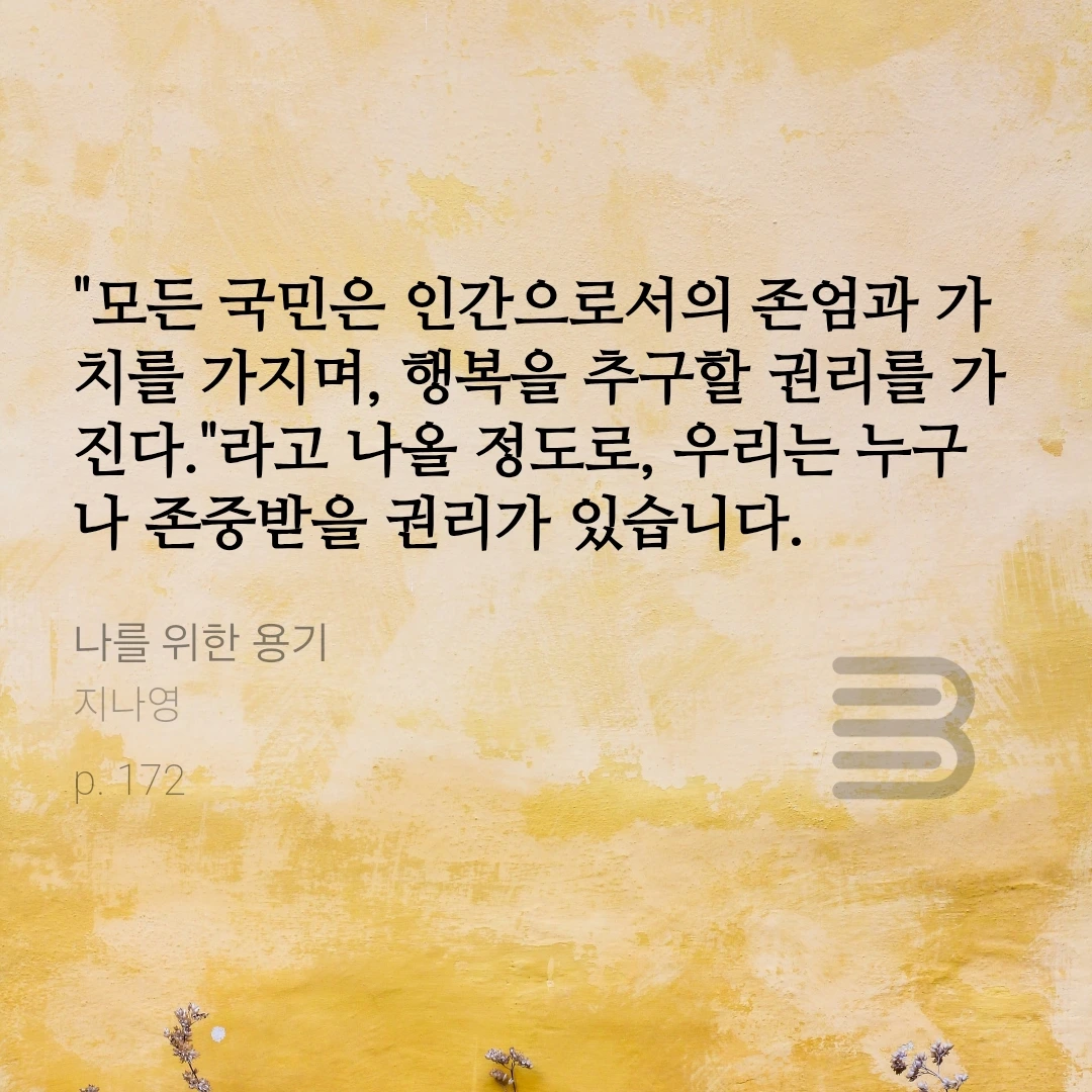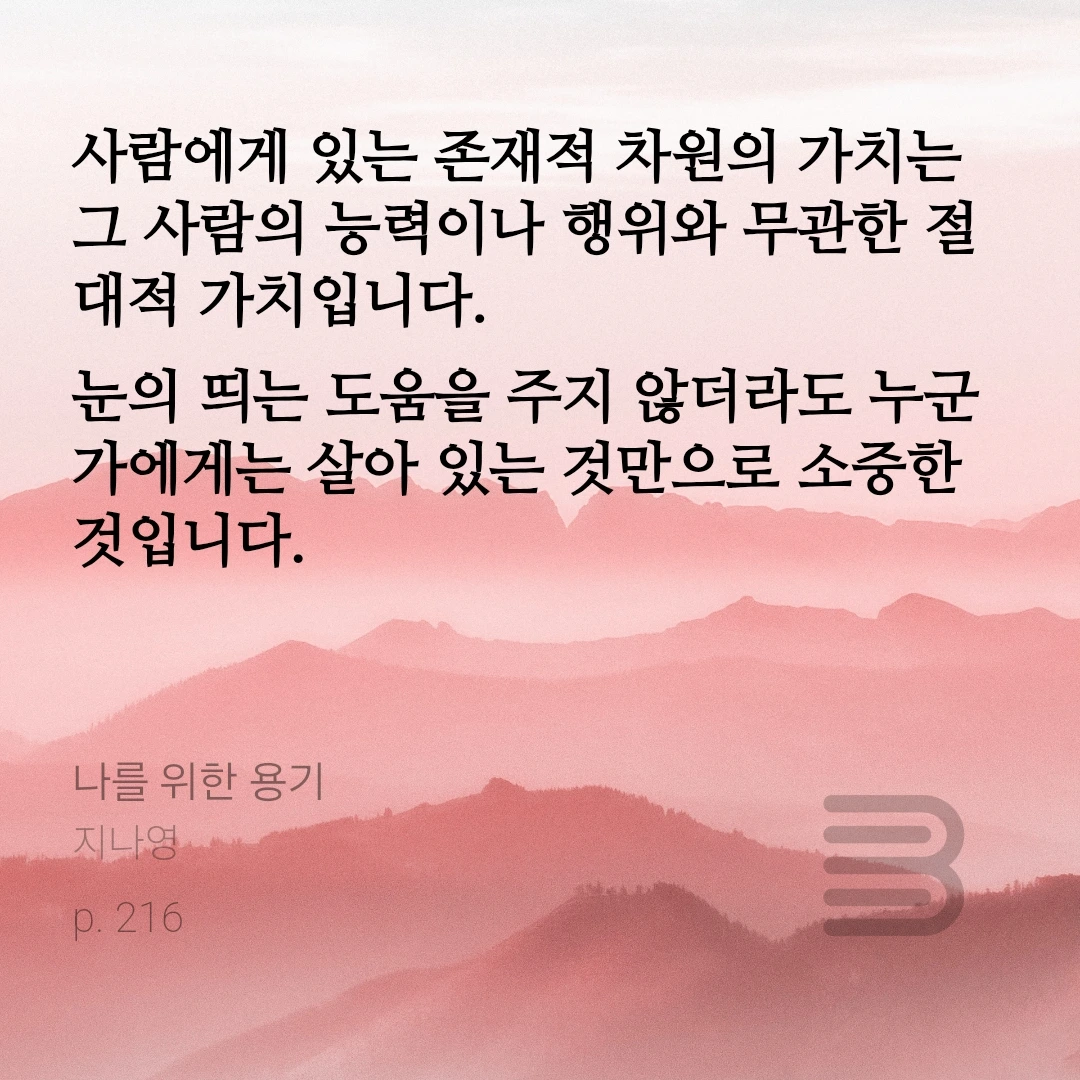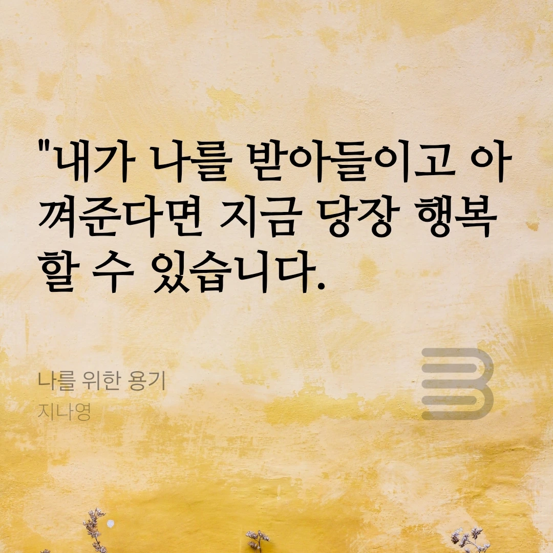 "내가 나를 받아들이고 아껴준다면 지금 당장 행복할 수 있다."