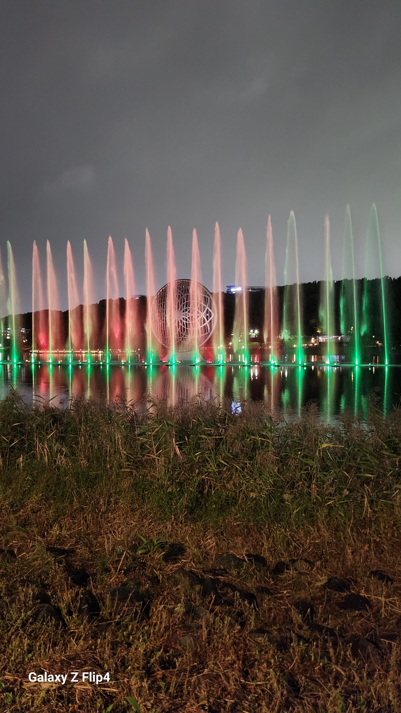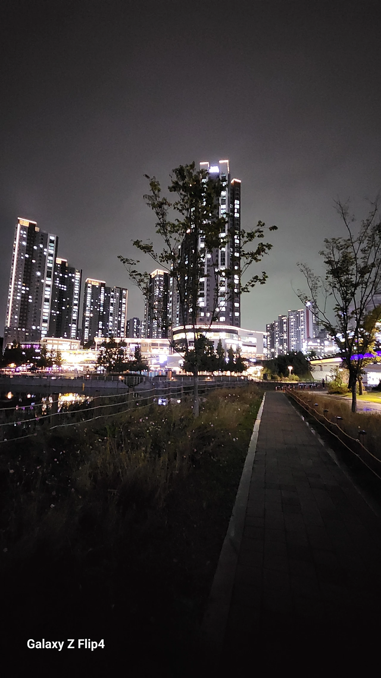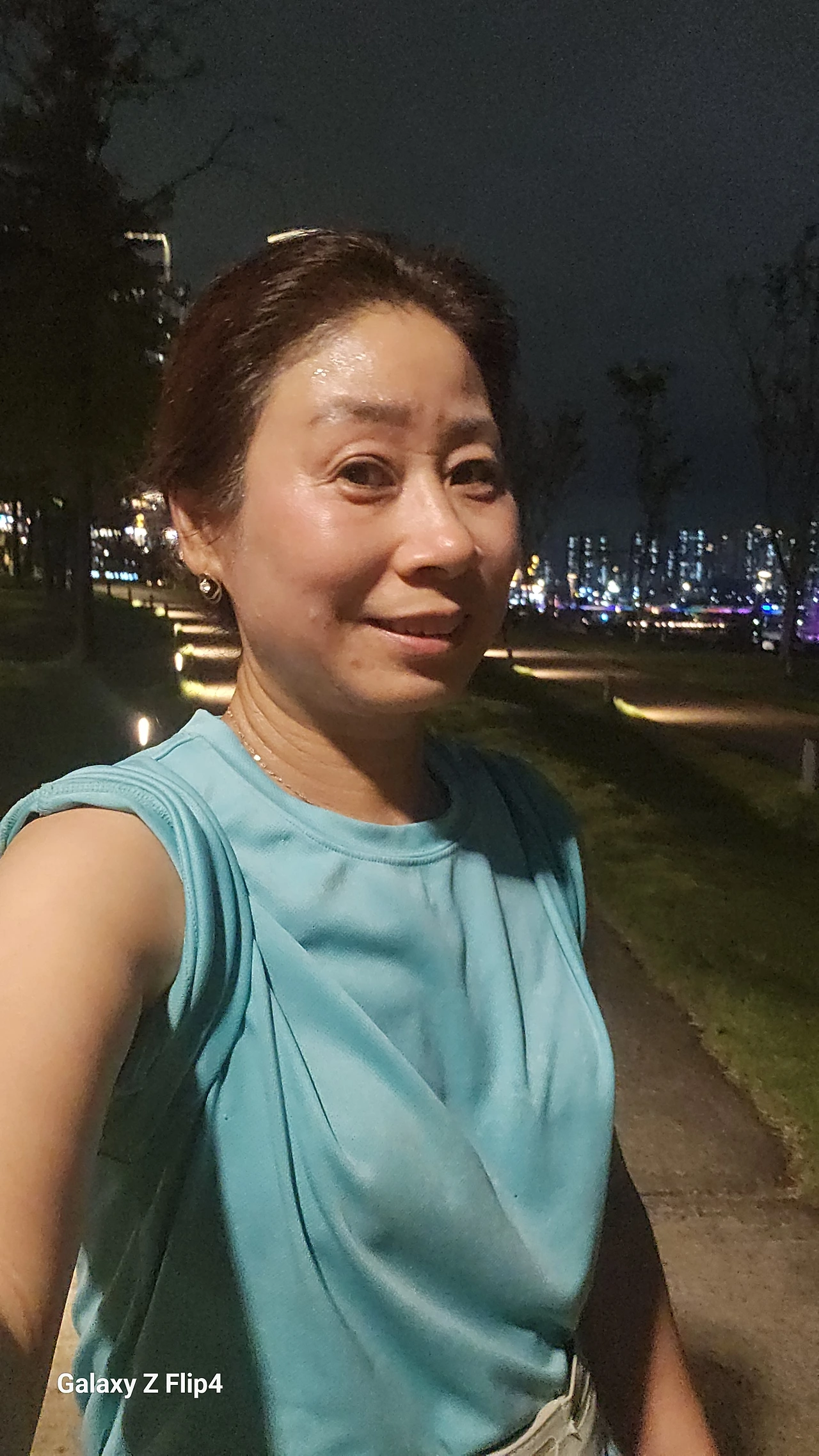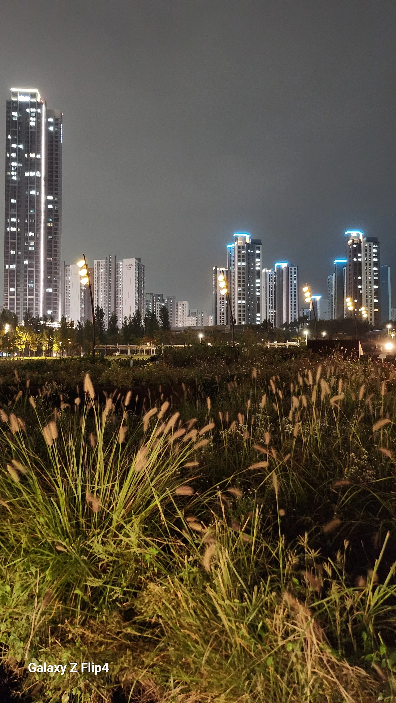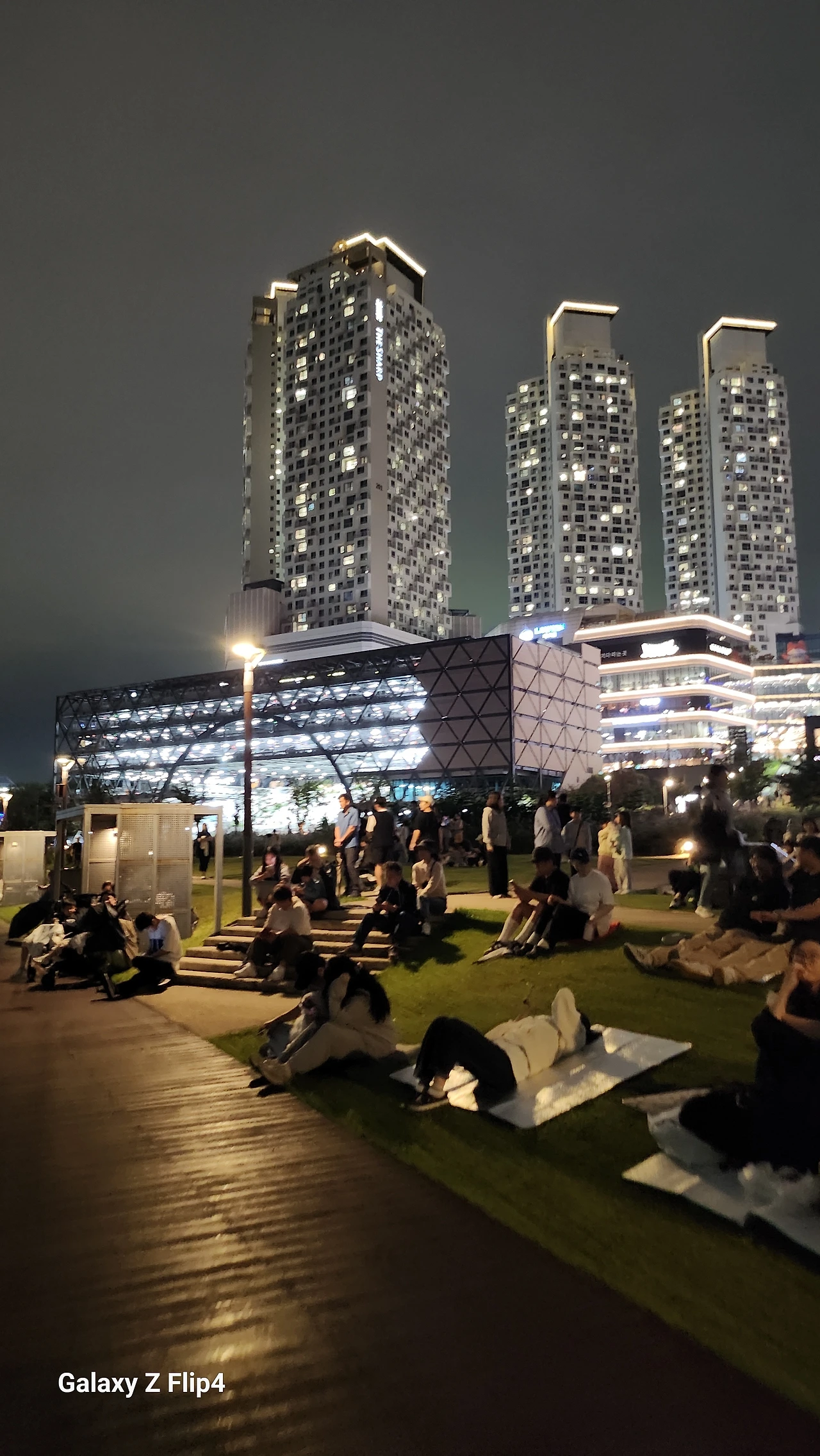 어둠 속, 로컬에서 산 물건 올려진 둥근 테라스에서 화려한 불빛을 내려다보며 혼자만의 사색을 즐긴다.