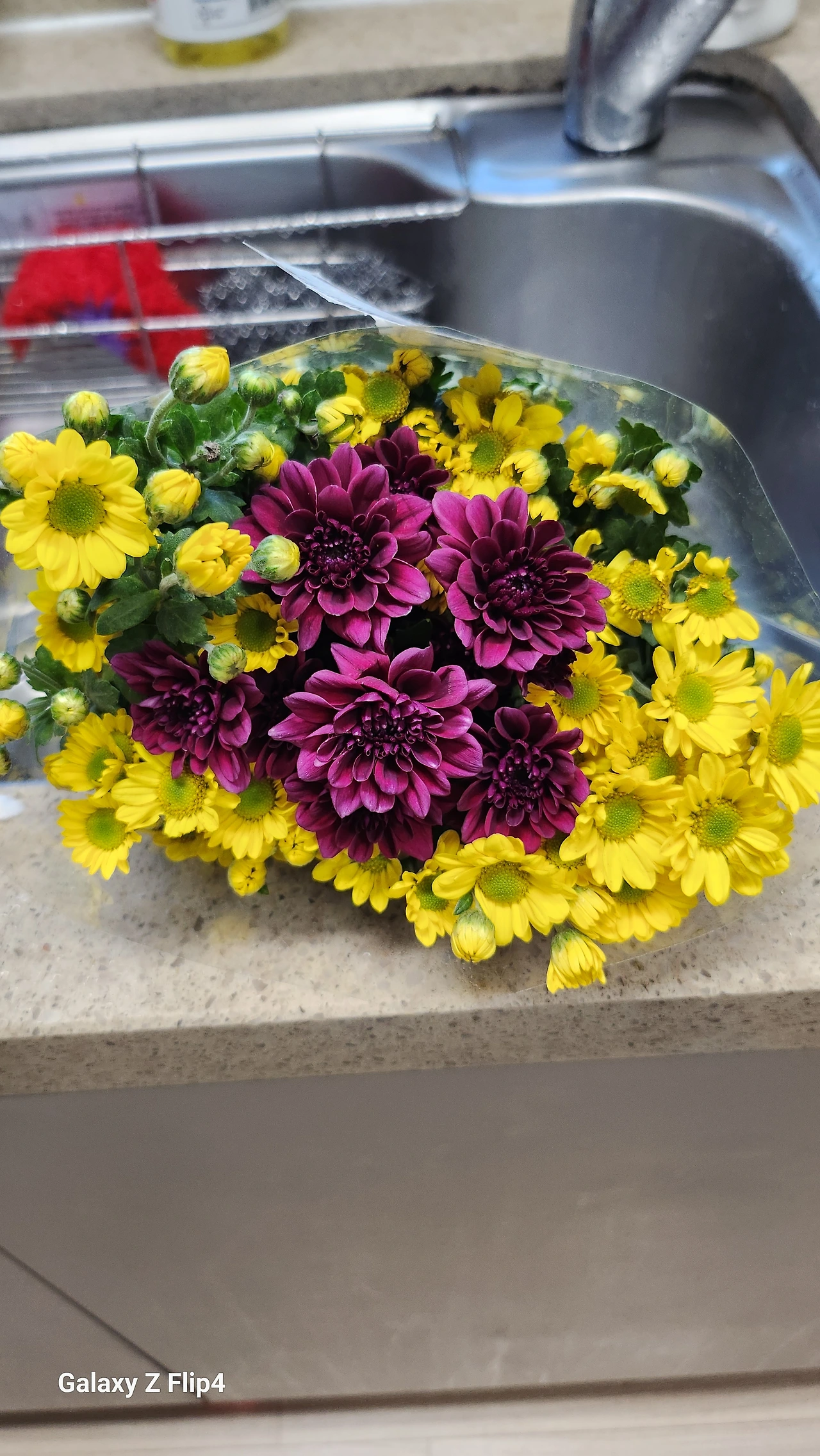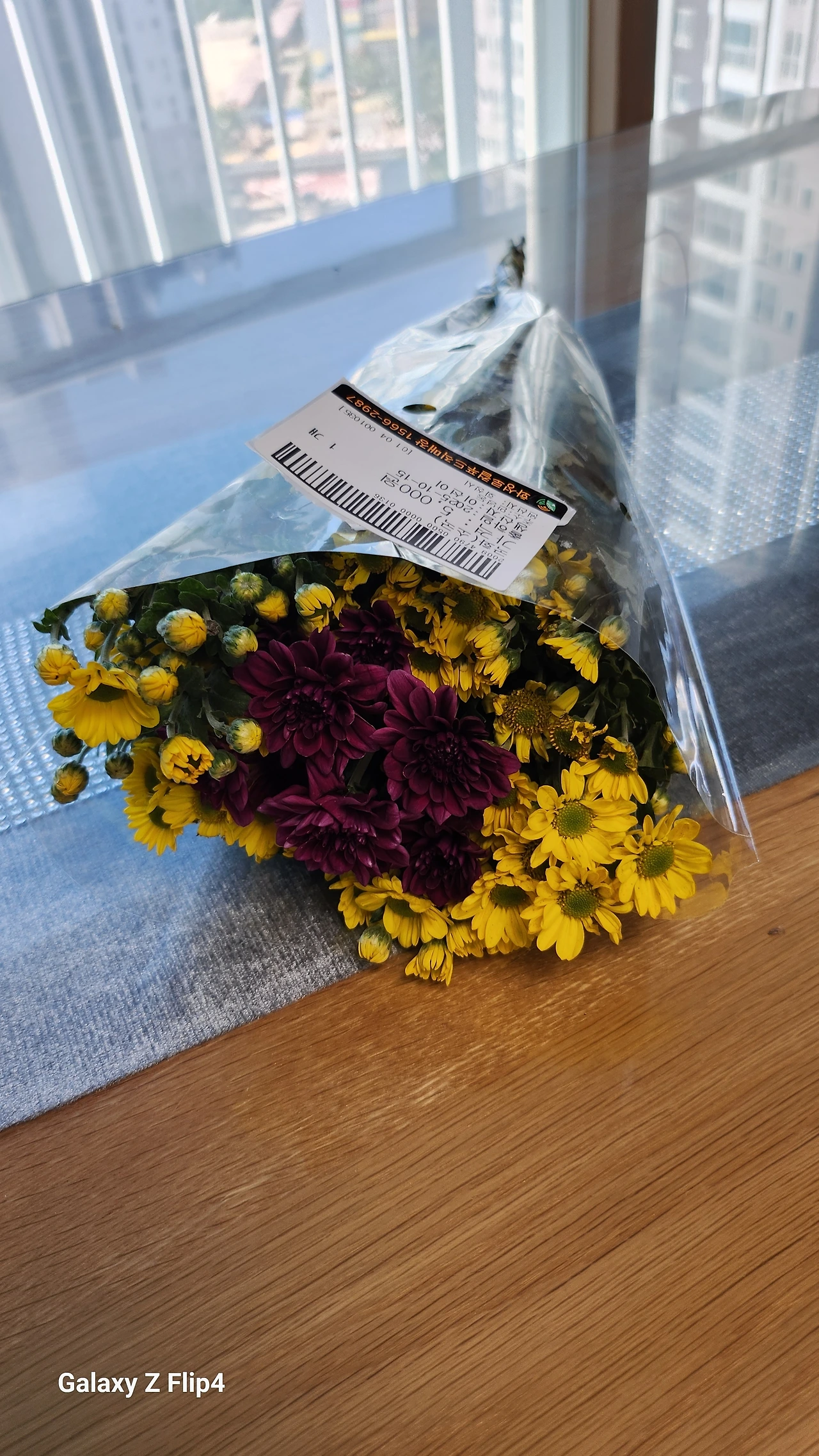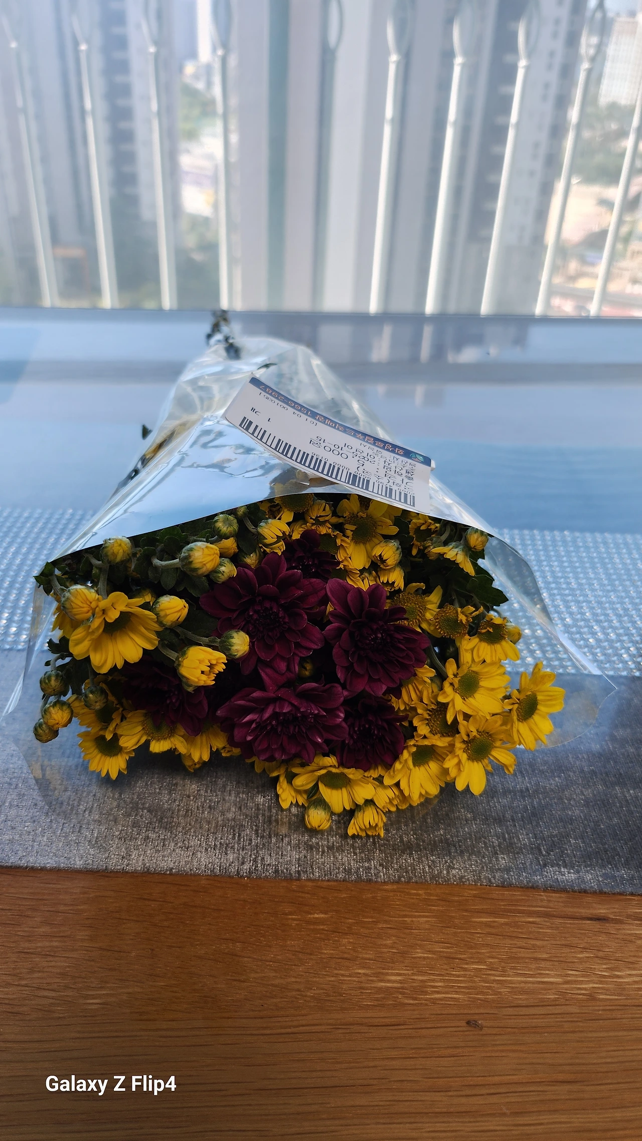 햇살에 반짝이는 국화 한 다발이 내 시선을 붙잡았다.
