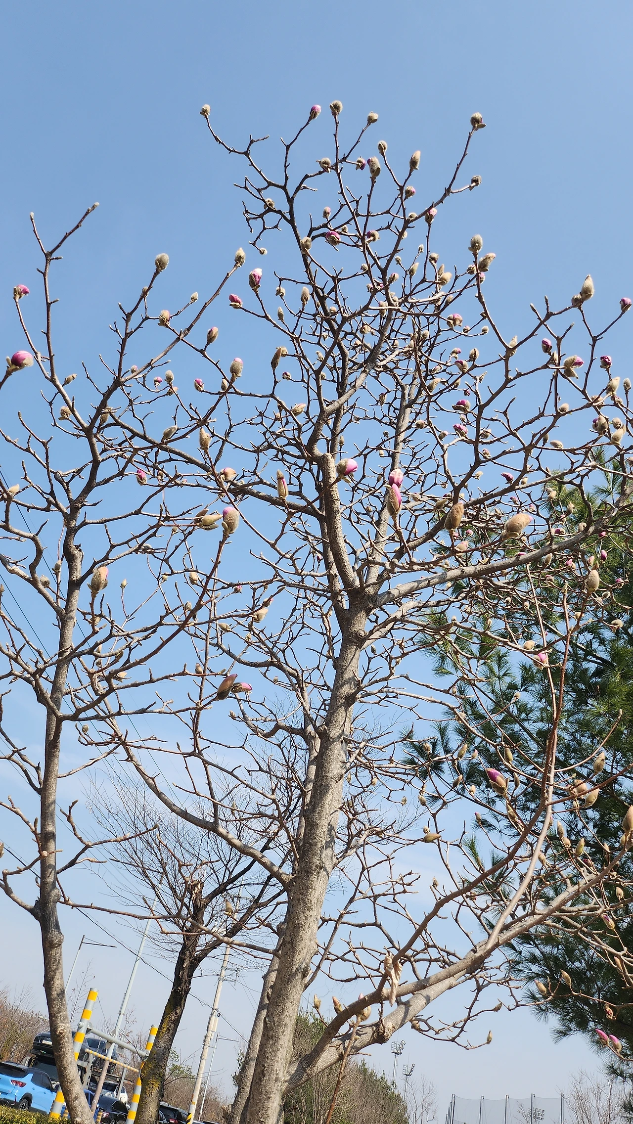 막 피어나려는 목련의 꽃망울이