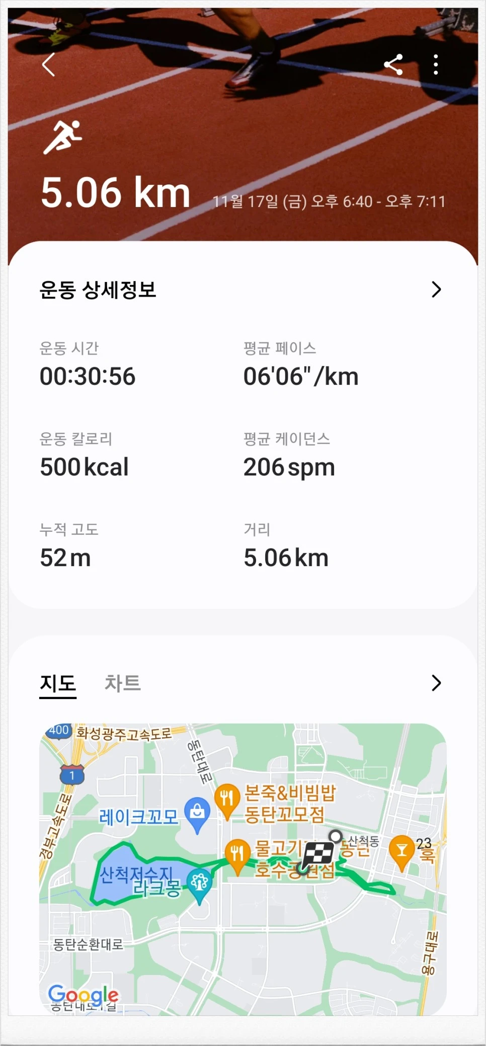 갑자기 추워진 날씨 탓에 밖으로 달릴까? 말까? 을 고민했지만 그럼에도 포기하지 않고 5킬로를 완주하고 상쾌해진 기분으로 자신감을 되찾아줘서 고마웠다.