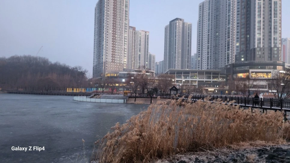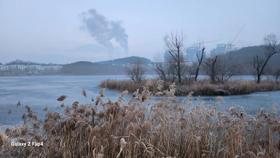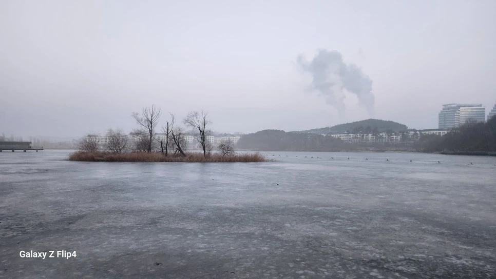 시린 손으로 밝은 태양이 없는 여유로운 호수만 찍어 됐다.