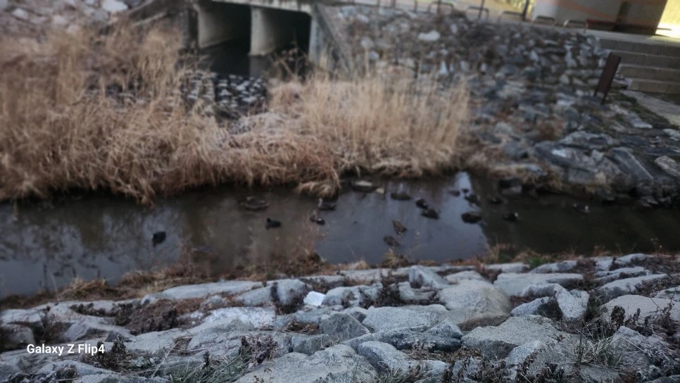 어제는 군데군데 물웅덩이에 철퍼덕 물이 튀었지만 내려간 온도 때문에 딱딱하게 얼어