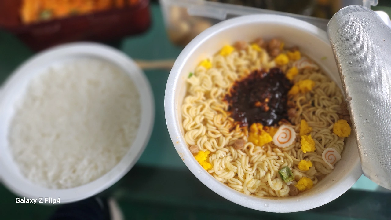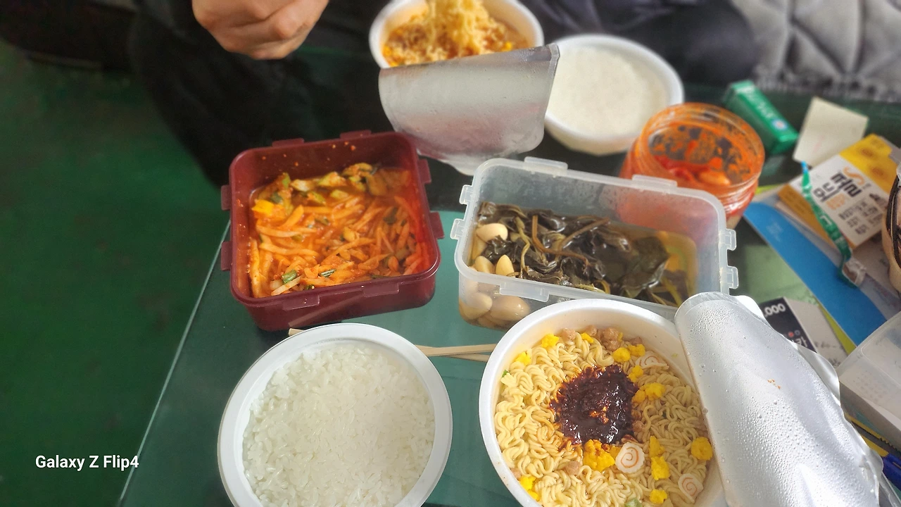 사무실에서 컵라면으로 점심을 때우는데 남편은 없는 반찬에도 잘 먹더라고요.