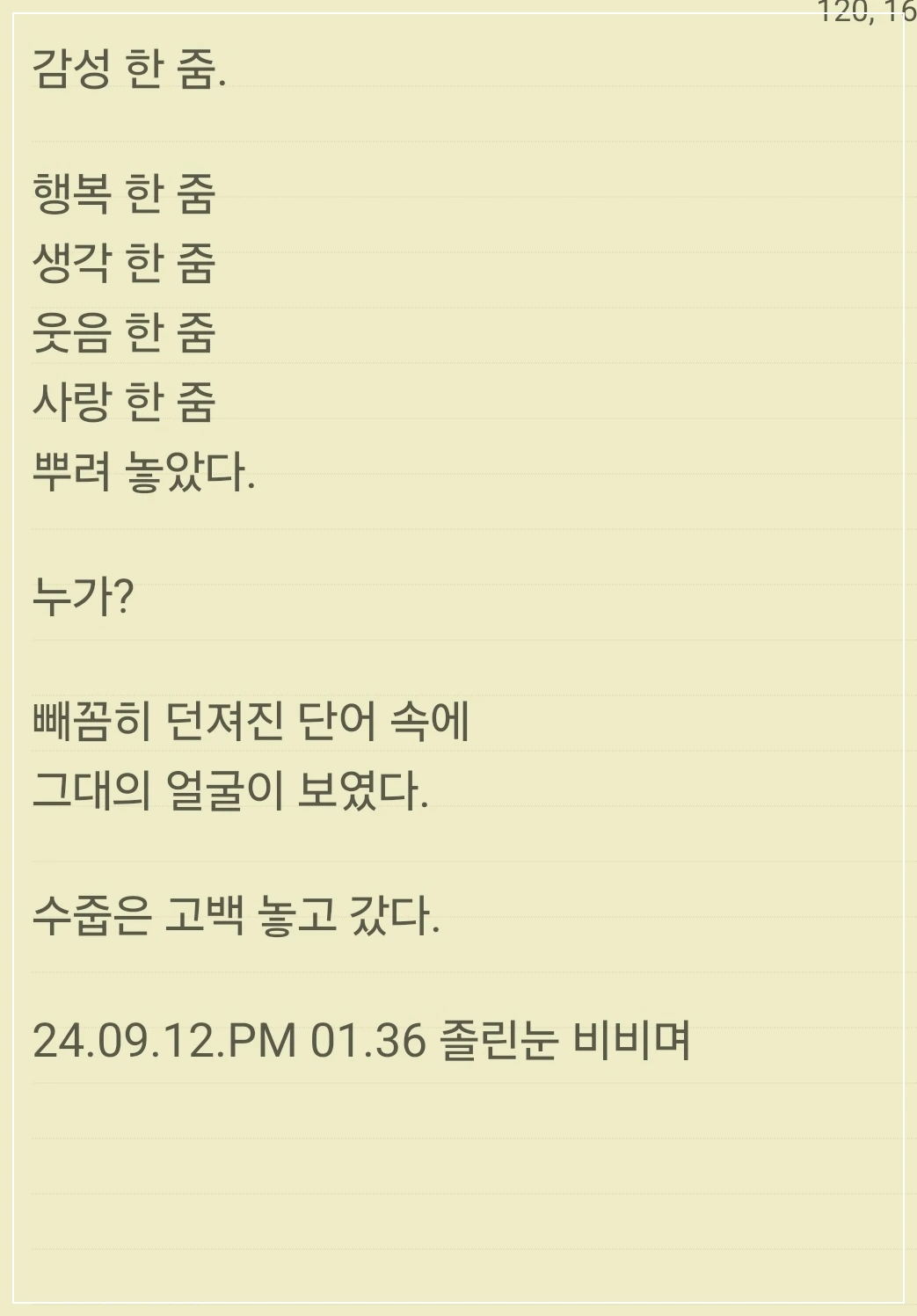 별이빛나는밤의 브런치입니다. 낮아진 자존감을 올리기 위해 매일 읽고, 쓰고, 달리기로 하루를 마주합니다. 어제보다 0.1% 성장한 삶을 꿈꿉니다.