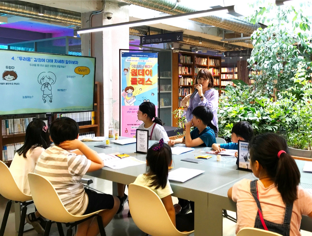 초반엔 책 홍보 겸 원데이 강연을 많이 했다. 책 내용을 요약해서 체험해 볼 수 있도록, 나와 닮은 캐릭터 만들기 > 내 감정 알아보기 > 내 캐릭터에 나의 감정을 담아 표현하기 순서로 진행했는데, 연필만 사용할 줄 알면 아이나 어른 누구나 할 수 있는 수업임에도 불구하고 하루 1-2시간 이내에 나의 감정을 표현하는 캐릭터 이모티콘을 만드는 건 쉽지 않았다. 특히 오늘 기분이 어때요?라고 물었을 때 단순히 '좋다, 싫다, 피곤하다.'라고 말하거나 '모르겠어요.'라고 대답하는 등 자신의 기분을 표현하기 어려워하는 경우가 많았다. 처음 본 사이에 친밀감이 형성되지 않아서 본인의 마음을 꺼내는 건 더 쉽지 않았다.