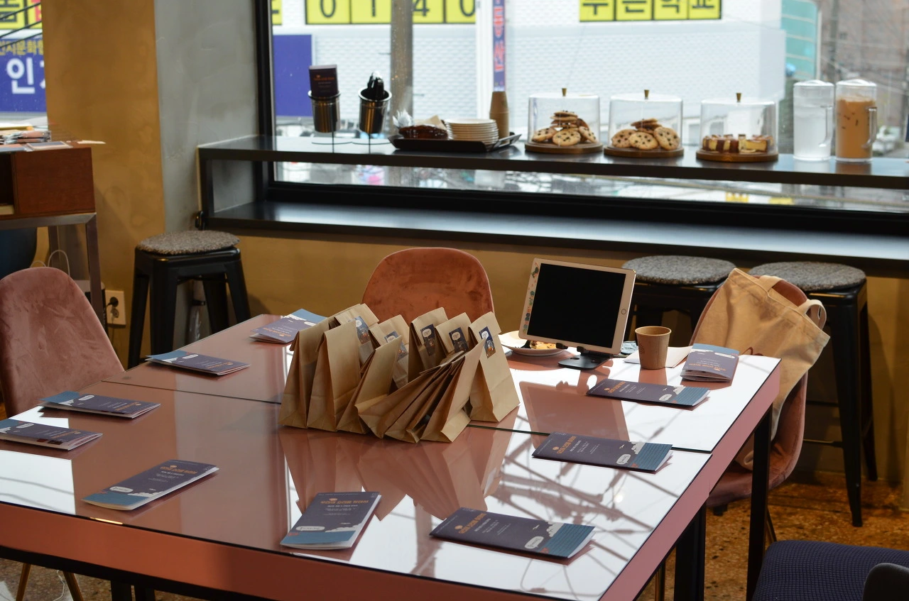 카페에서 참여자들을 위한 쿠키와 케이크, 음료를 넉넉히 준비해주었다.