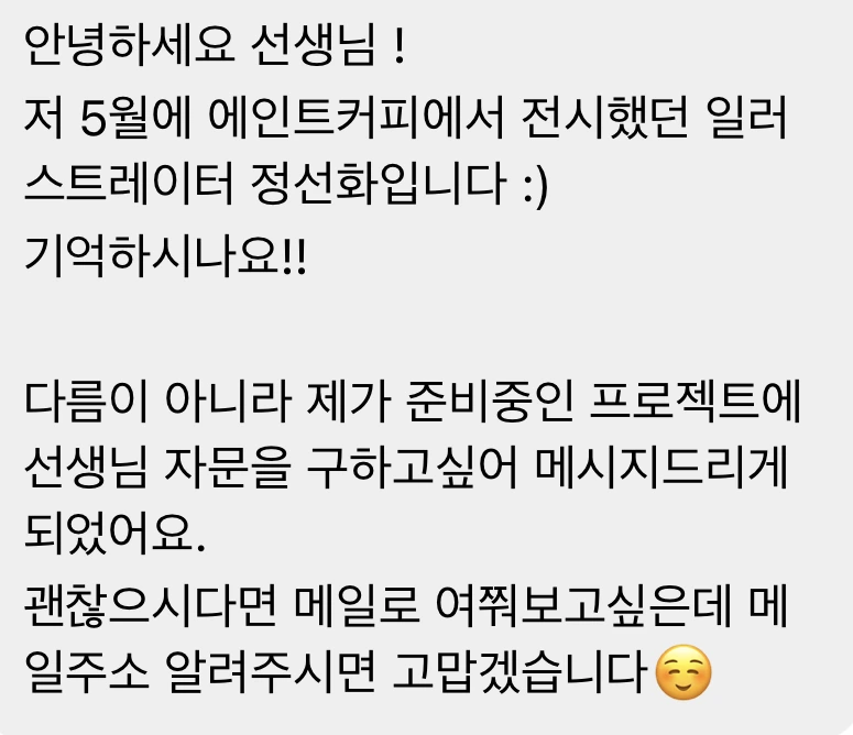 그렇게 지수 선생님에게 미팅 요청을 하게 되고, 나의 작업실에서 셋이 만났다.