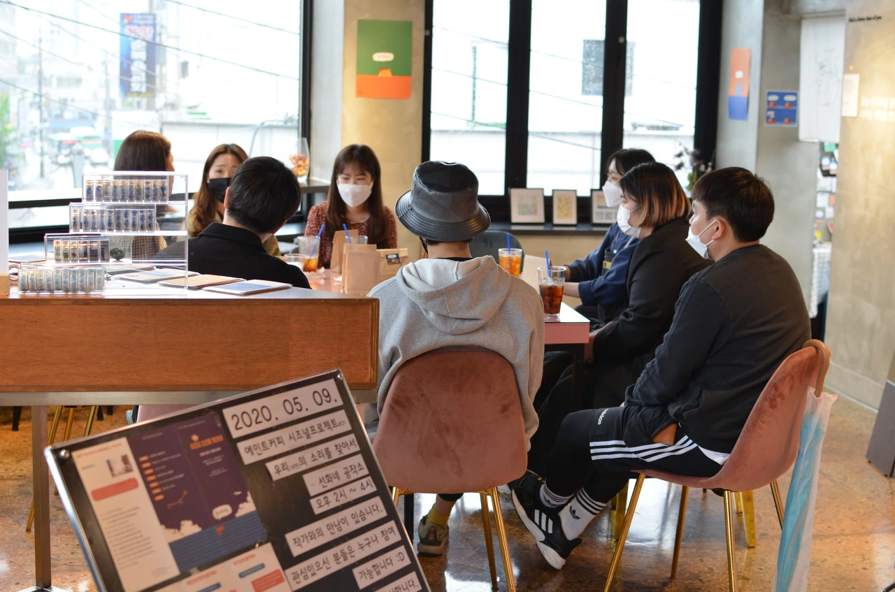 모임을 하기 전, 정말 다양한 직군의 사람들이 모였으면 좋겠다- 싶었는데, 실제로 카페에서 제과를 담당하는 학생과 연기자 겸 선생님, 디자이너, 일반 회사원, 장난감 회사 마케터, 간호조무사 등 다양한 직업과 나이대의 사람들이 모였다. 카페 사장님도 바쁜 와중에 참여해서 짧지만 좋은 얘기를 해주었고 감정카드 제작에 많은 도움을 주신 중학교 상담교사 지수 선생님도 그 자리에서 만났다.