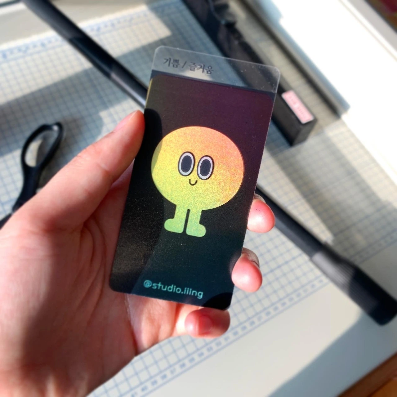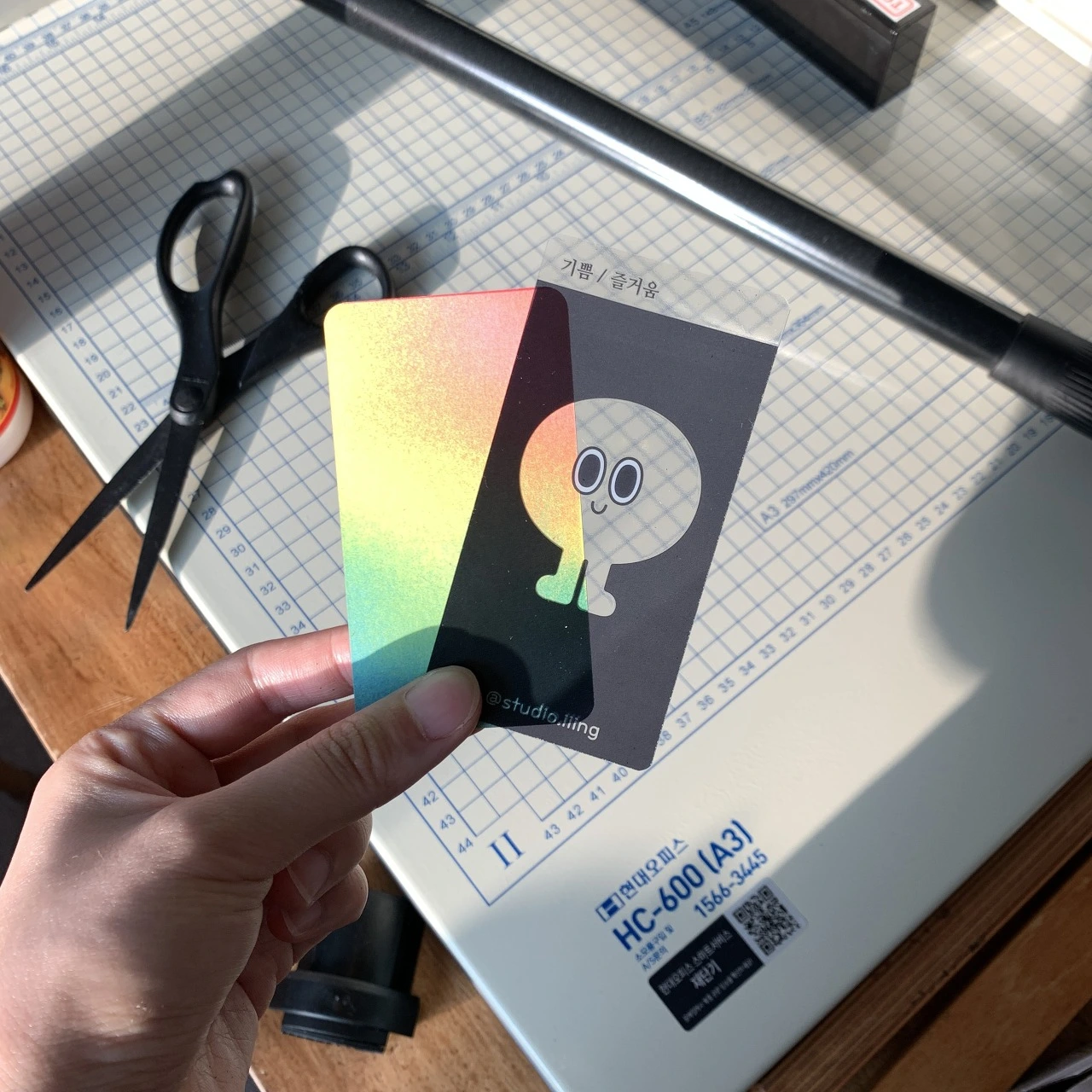 종이는 두께감과 약간의 텍스쳐가 있는 켄도지로 결정을 하고, 투명 이모 카드도 2군데 제작을 해보고 최종 결정을 했다.