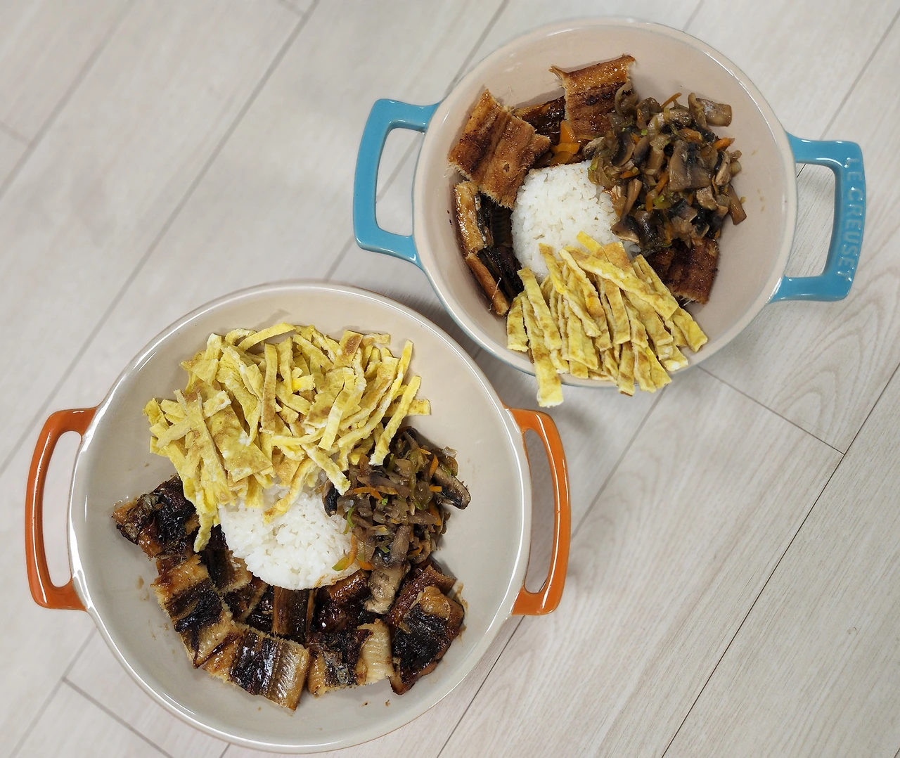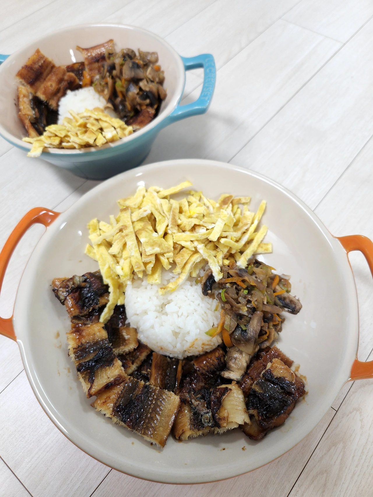 계란이 있다면 간단히 지단을 만들어 올려도 좋다. 보기에도 좋고 장어를 그다지 좋아하지 않을 수 있는 가족 구성원이 있다면 또한 꼭 필요한 아이템이다.