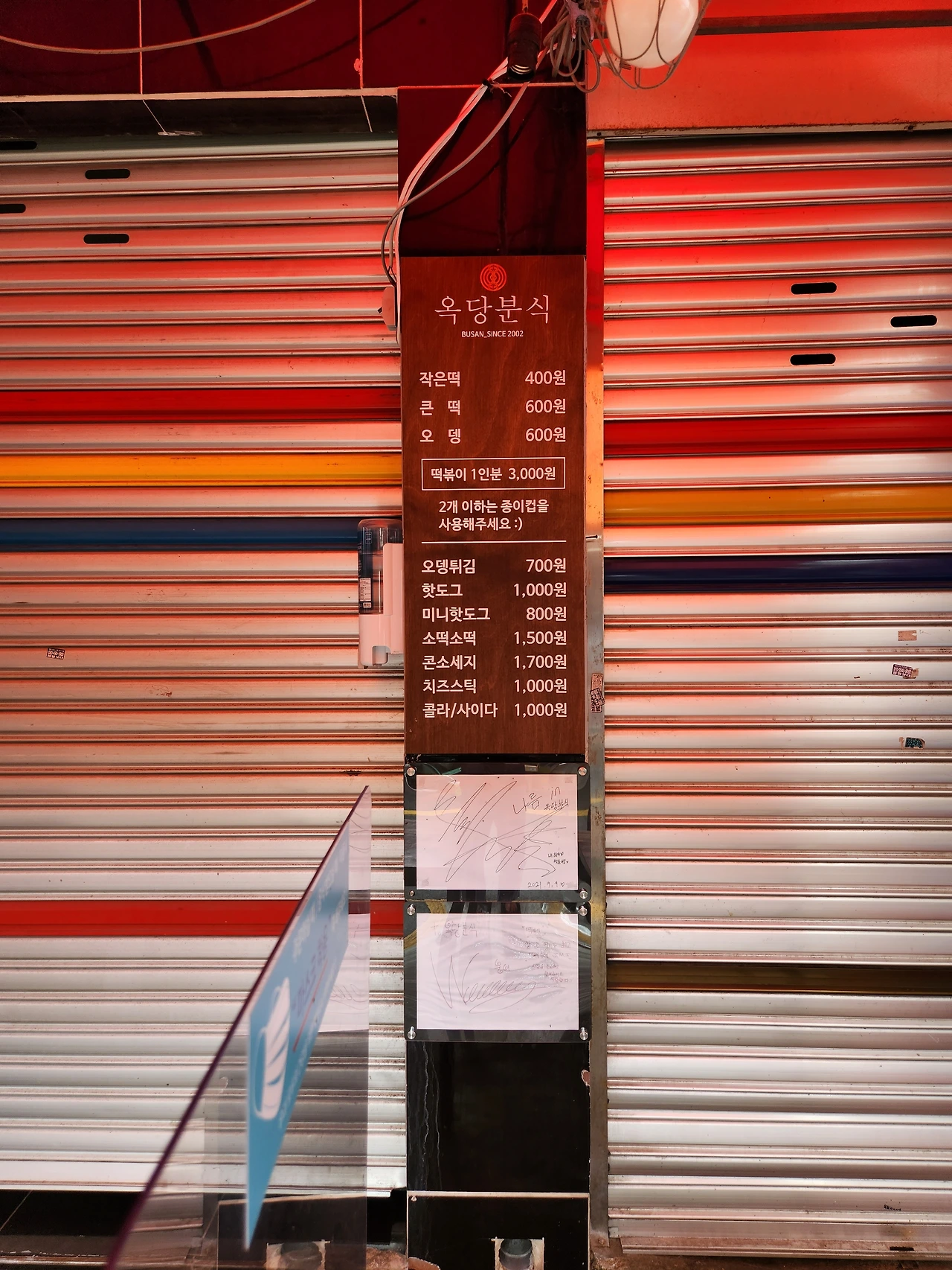 옥당분식의 최애 메뉴는 바로 떡볶이, 맵단의 경계를 균형 있게 잡아주는 특별한 맛이다. 소떡소떡을 비롯해 어묵 튀김 등 옥당분식만의 유니크한 메뉴들이 가득하다. 아이와 함께 갔던 산책 겸 임장이라 문을 닫은 옥당분식을 마주하고 아이가 더욱 아쉬워했다.