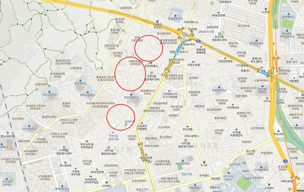 명절 연휴, 하루 정도는 아이와 함께 산책을 하며 임장을 해야겠다고 마음먹었다. 임장 후보지 4곳 중에서 집과 가장 가까운 거리에 있는 곳으로 낙점! 그곳이 바로 사직동과 온천동의 경계에 있는 금강초등학교 양 옆이다.