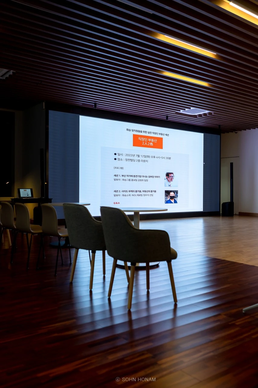 부산 연산동 회사 사옥에서 특별한 세션이 열렸다. 사내 임직원들을 위한 부동산 세션, 직장인 부동산 2人 2色. 직원들을 위한 부동산 강의라고? 그것도 직원들이 직접 강의를 한다고? 세상에나 마상에나 그것도 퇴근 1시간 전에? 하지만 열렸고, 시작되었다.
