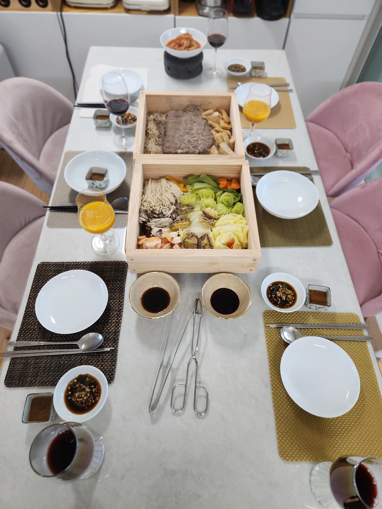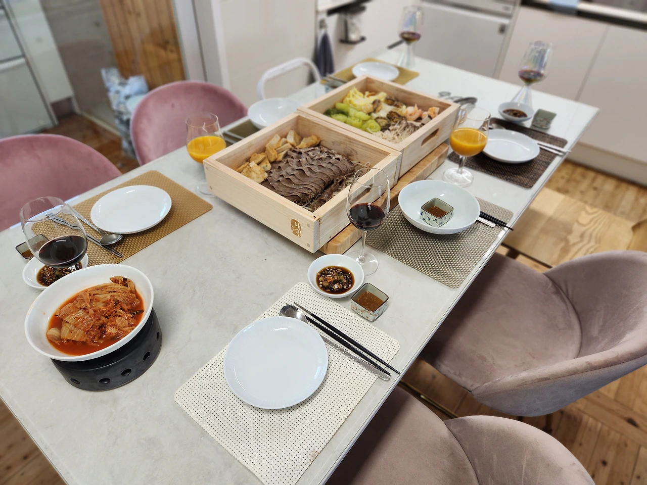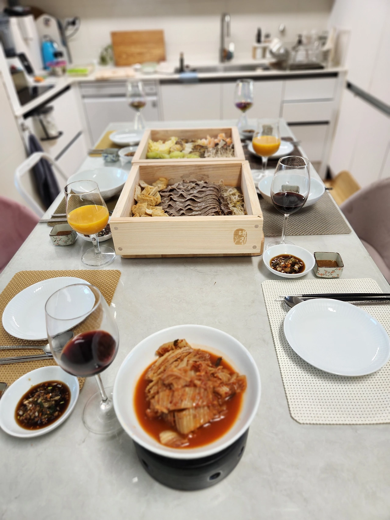 상큼한 숙주나물 위로 가지런히 놓인 엷게 저민 한우에 어묵이 맛을 더한다. 버섯, 배추를 비롯한 갖가지 야채와 새우가 어우러진 또 한상에 가족의 온기가 더해진다. 각자의 접시에 하나씩 덜어내 와인 한잔으로 한해의 깊은 한숨을 내어놓은 시간. 그리고 새해의 희망을 불어넣는 순간.