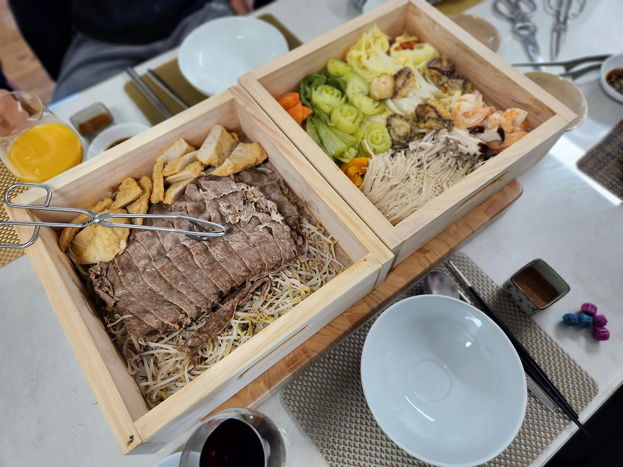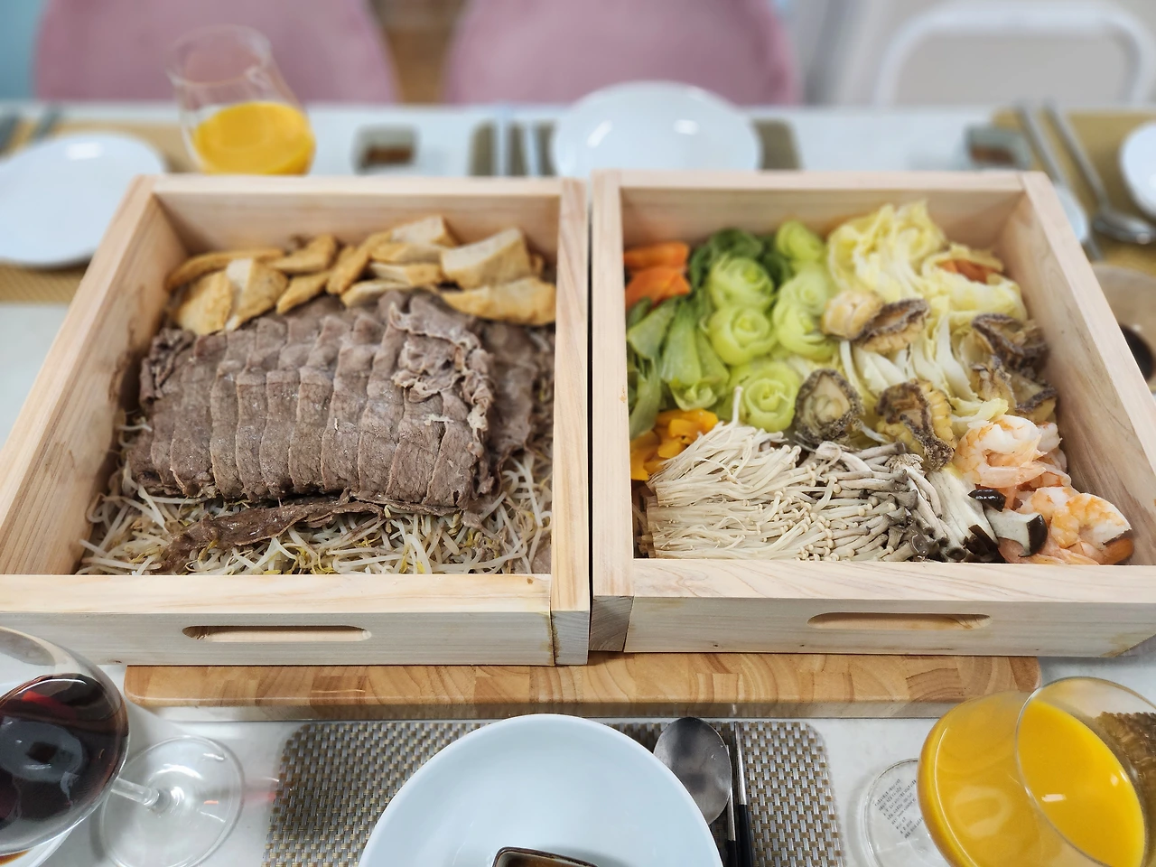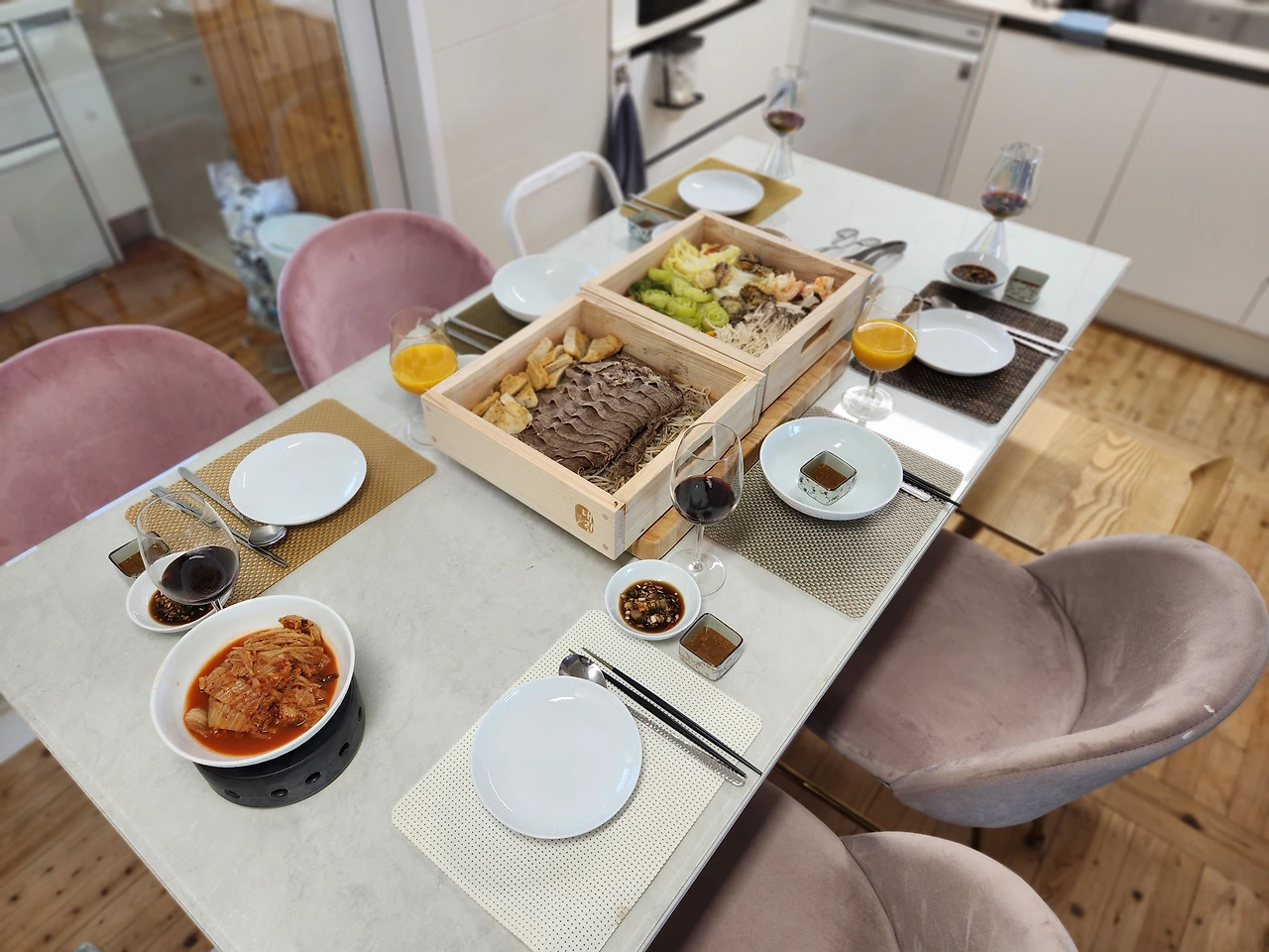 상큼한 숙주나물 위로 가지런히 놓인 엷게 저민 한우에 어묵이 맛을 더한다. 버섯, 배추를 비롯한 갖가지 야채와 새우가 어우러진 또 한상에 가족의 온기가 더해진다. 각자의 접시에 하나씩 덜어내 와인 한잔으로 한해의 깊은 한숨을 내어놓은 시간. 그리고 새해의 희망을 불어넣는 순간.