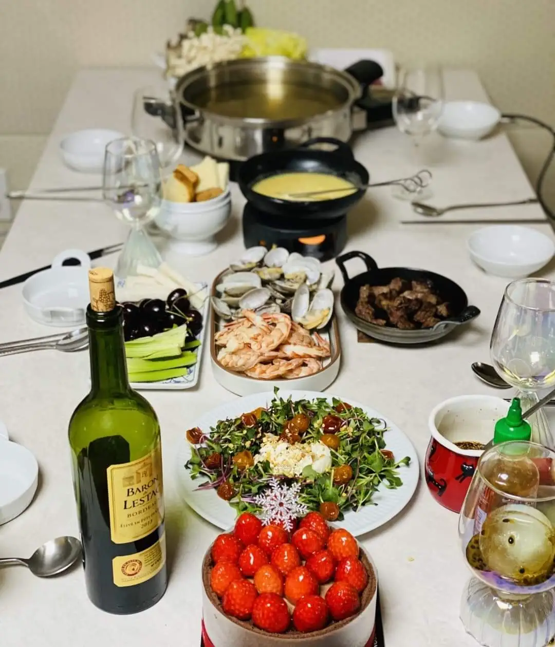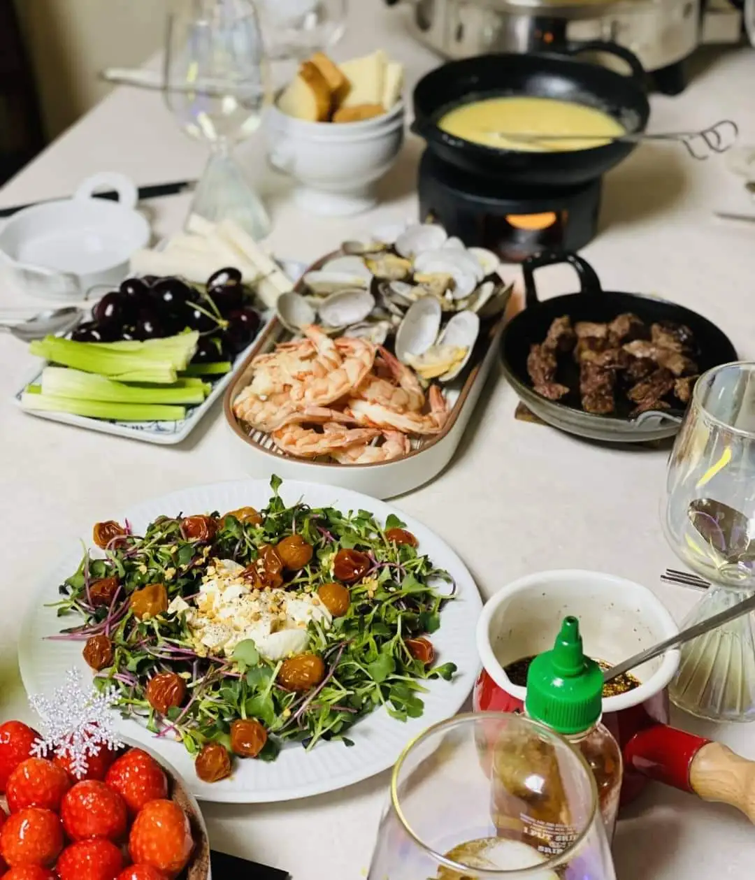 작년의 크리스마스 홈 파티가 생각났다. 모둠 치즈 퐁듀. 스테이크에 해산물 등을 치즈에 찍어 발라 먹는 메뉴였는데 비주얼 끝판왕이었던 기억. 늘 형네와 우리 가족은 이렇게 크리스마스 홈 파티로 한 해를 마무리한다. 서로를 위로하며 배려하고 아낌없는 응원을 나누는 소중한 시간으로 말이다.
