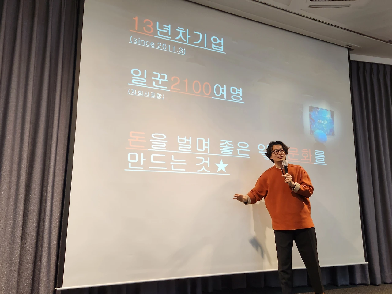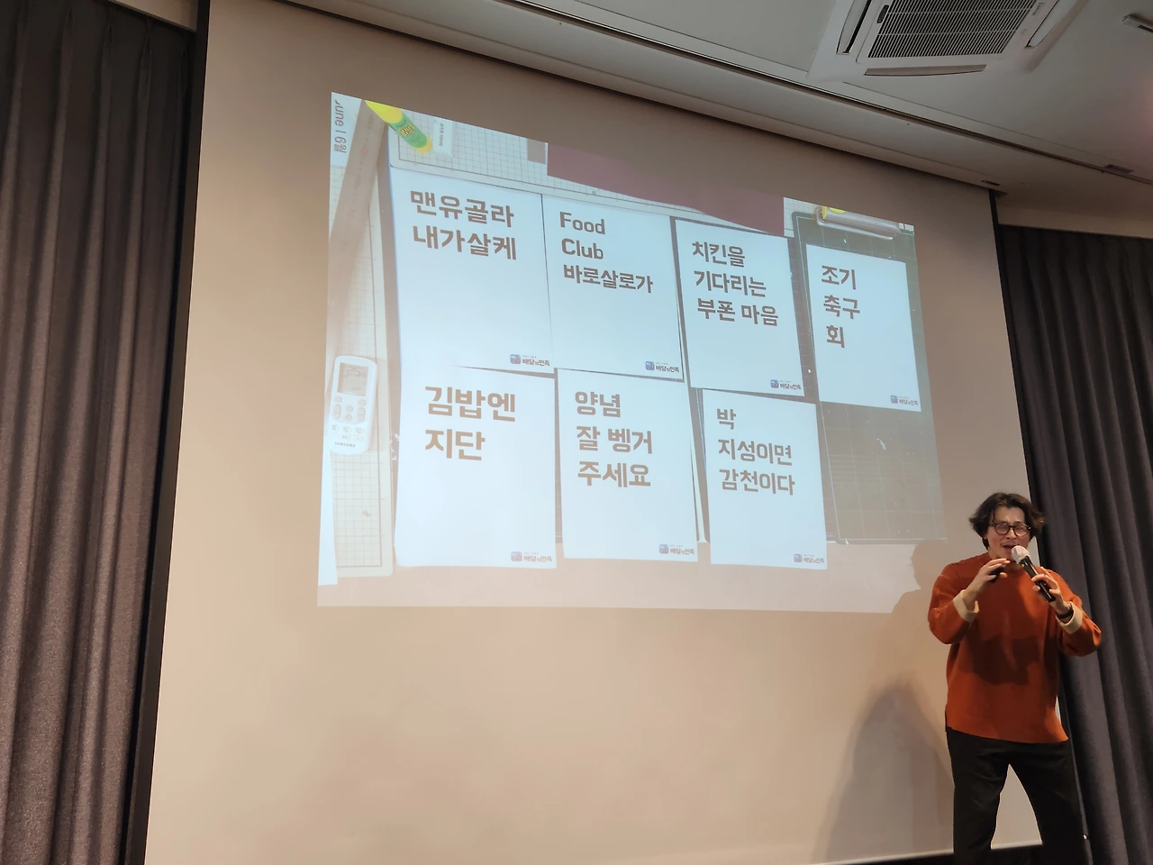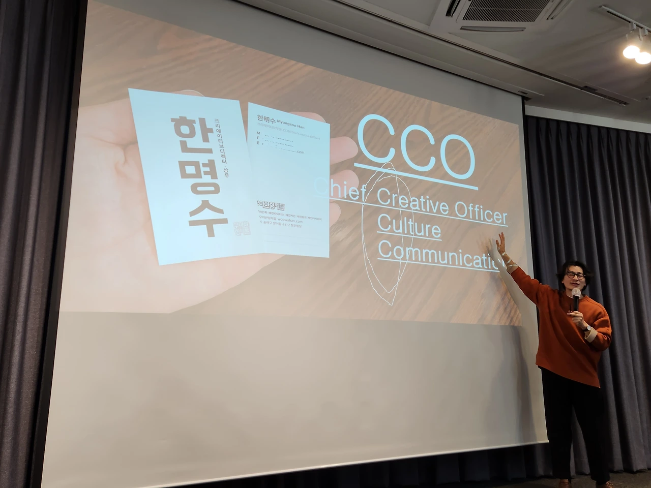 배달의민족으로 힙한 우아한형제들 CCO(Chief Creative Officer 기업에서 고객 관련 이슈들을 전담하고 책임지는 임원급 직책)인 한명수 상무. 디자이너 나부랭이에서 SK 인하우스에이전시(SK플래닛, SK커뮤니케이션즈)의 싸이월드, 네이트, 11번가, T스토어 담당을 거쳐 배민의 크리에이티브디렉터이자 컬처, 커뮤니케이션을 담당하는 상무(CCO)로 53세라는 나이가 무색할 만큼 잘! 노는 분이었다.