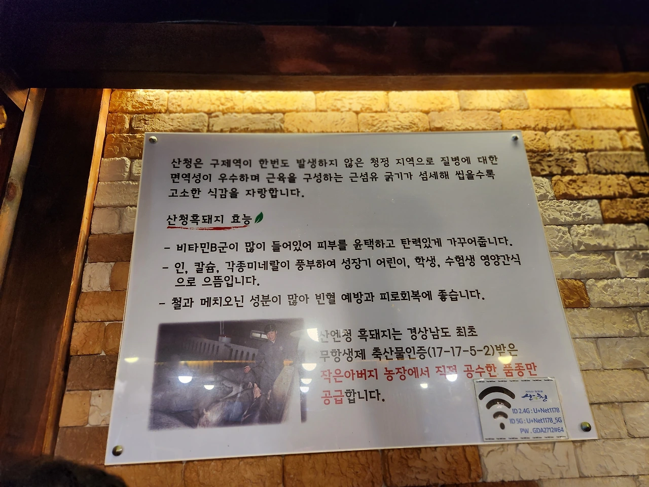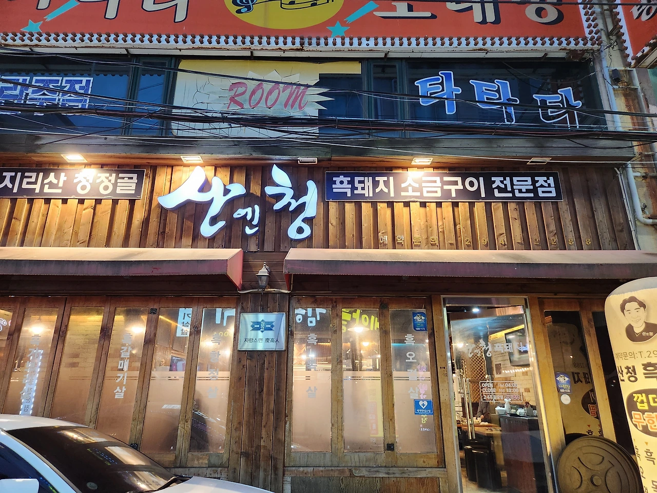 흑돼지하면 제주, 제주 하면 흑돼지다. 지인의 초대로 함께하게 된 자리, 산청 흑돼지를 먹을 수 있는 곳이란다. 지리산 아래, 경남 산청. 왠지 지명만으로도 산뜻하고 청아한 곳, 산청, 그곳에서 먹고 자란 돼지고기라니, 게다가 흑돼지라니 왠지 설레었다. 생각보다 먼 하단에 위치해 있어 아쉽지만 퇴근 후 쏜살같이 달려갔다.