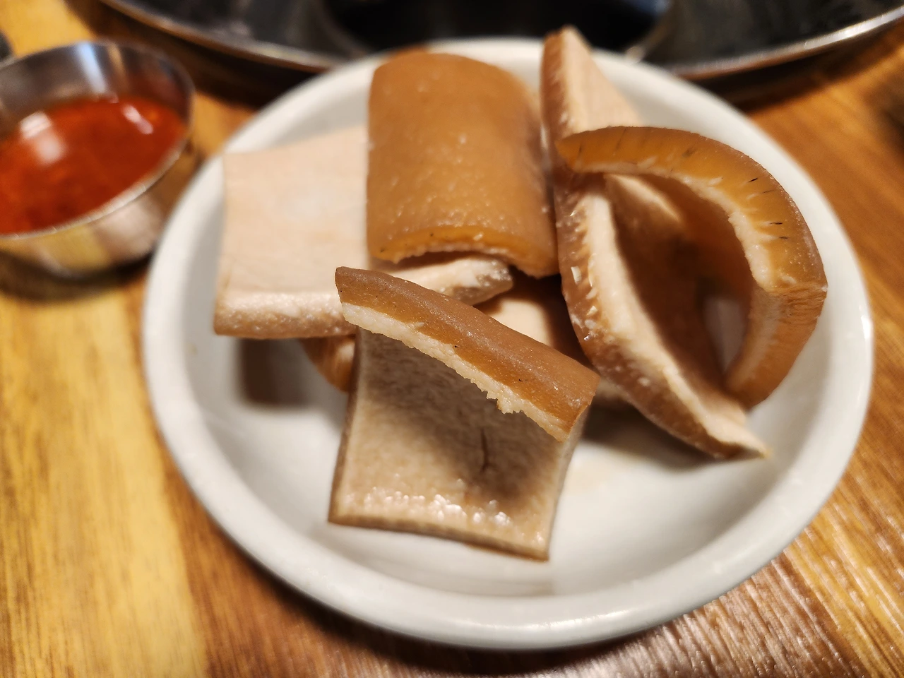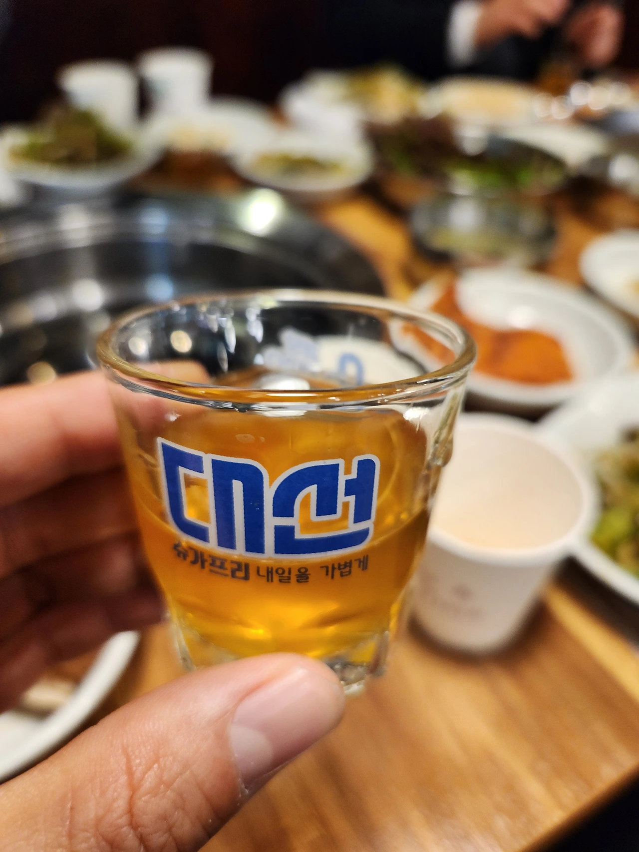 모 홍삼 브랜드의 대표님도 함께한 자리라 홍삼 스틱을 소주에 넣어 홍삼주로 먹으니 술맛이 더했다. 부산이라 대선소주. 점점 늘어났던 초록색 병이 생생했던 밤. 문득 맛집이라면 거리가 무슨 대수겠냐 싶었다. 부산이라면 언제든 OK. 뒤이어 이어진 술자리로 다음날 속은 쓰렸지만 꼭 한번 다시 가고 싶은 산엔청이다.