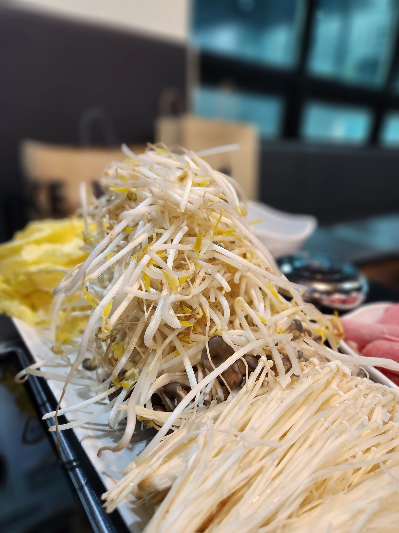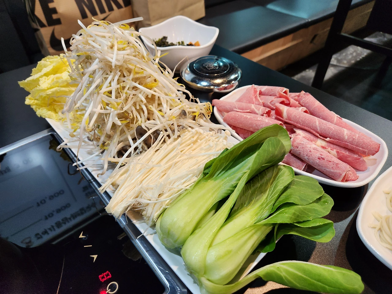 여느 등심샤브 집과 메뉴 구성의 차별은 그다지 없다. 기본에 충실한 구성인데 야채의 어마어마한 양에 놀란다. 산더미 숙주에 와! 하고 벌어진 입은 가격 대비 크게 기대가 가지 않는 등심의 맛에 또 한 번 와와! 하고 감탄을 쏟아내게 된다.