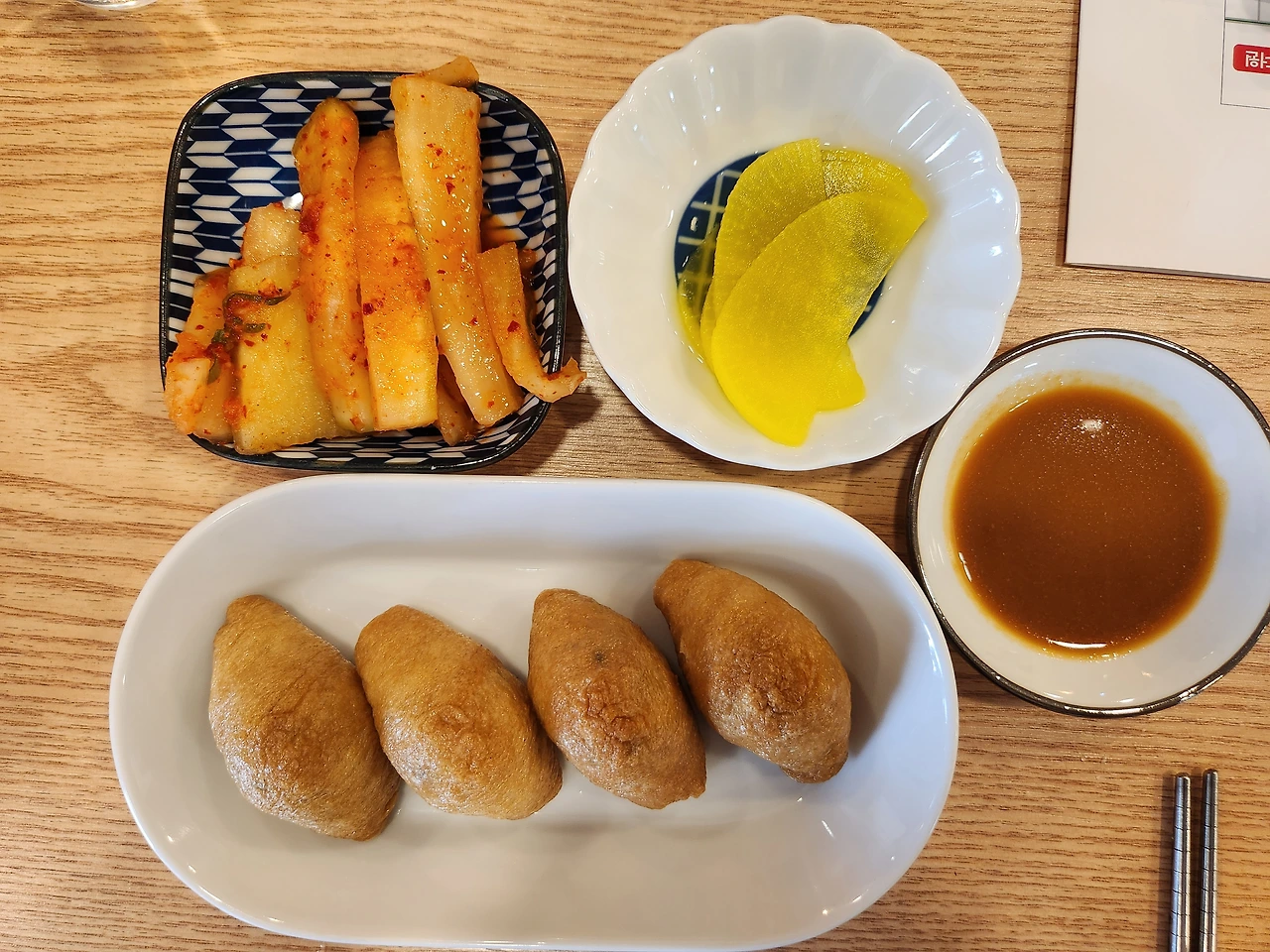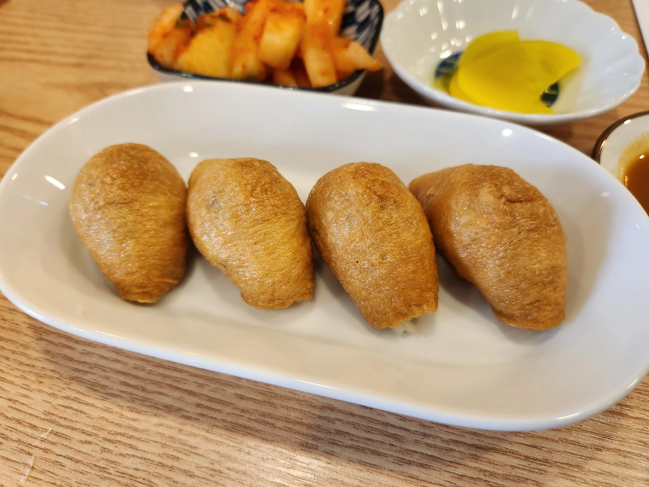 슥삭 비벼 한입에 넣는 순간, 아! 이게 볶음우동이구나. 일본 패키지여행 가서 먹었던 그 맛 그대로구나! 싶다. 일본여행을 그렇게들 많이 간다는데 갈 엄두를 못 낸 내가 그냥 여기 앉아서 일본 우동을 먹고 있네 싶다. 세트로 함께 내온 유부초밥은 또 어떤가. 적당한 크기, 과하지 않은 맛에, 한입 베어 물고 맛있다! 소리가 절로 난다.