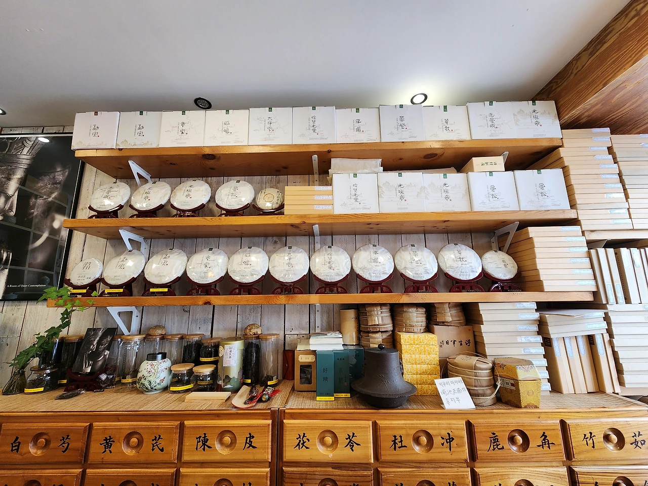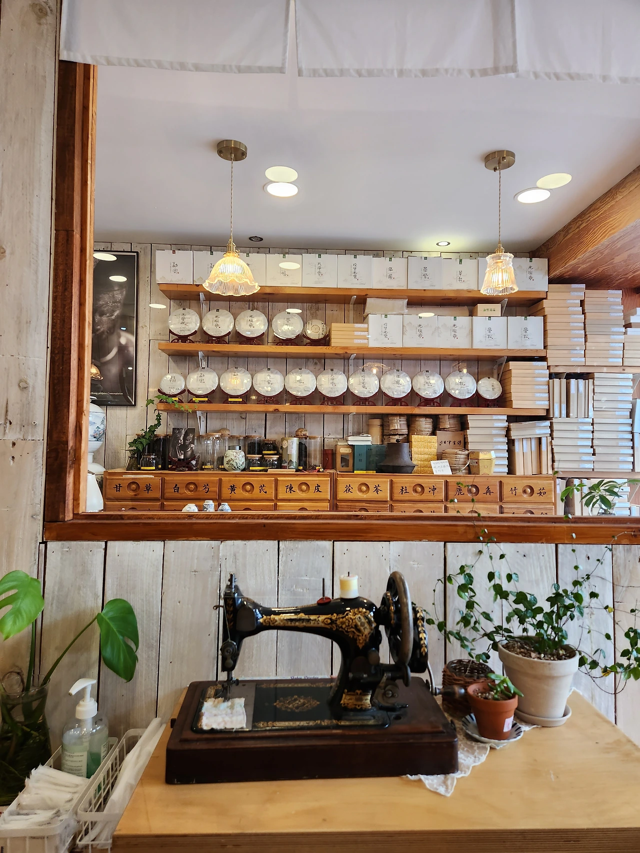우동집인데 바로 옆엔 보이를 비롯한 각종 차들의 향연이 펼쳐져 있다. 보이차 시음과 판매도 함께 된다고 안내가 되어있다. 찻잔도 이쁘고 보이차도 왠지 향이 확 퍼질 것 같은 분위기에 취한다. 엔틱 한 재봉틀에 잠시 향수에 빠져드는 순간, 아, 여기 우동집이었지? 계산을 마치고 가게 문을 나선다.
