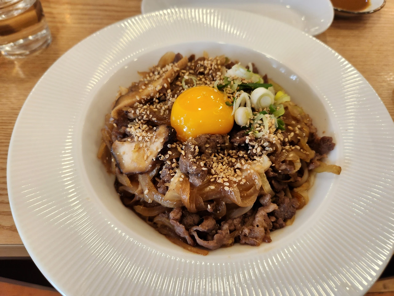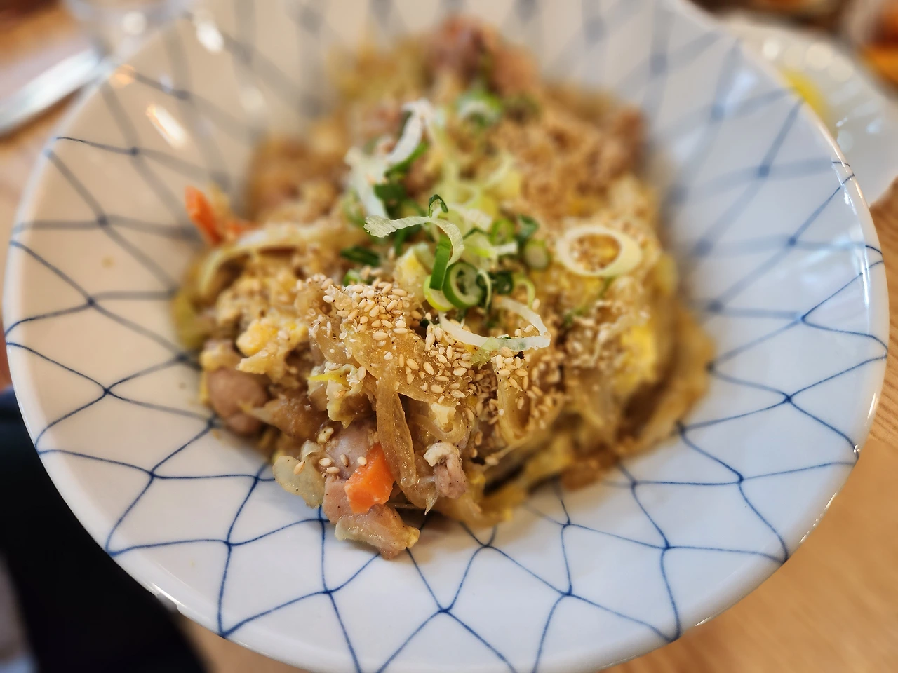 우동집에 가면 당연히 기본인 우동을 시켜야 하는데 밥을 좋아하는 일행 둘은 덮밥을(닭고기계란덮밥, 소고기덮밥) 우동을 좋아하는 둘은 명란비빔우동+유부초밥, 볶음우동+유부초밥 세트를 주문했다. 비빔과 볶음을 잘한다면 뭐 기본 우동이야 볼 거 없으니.