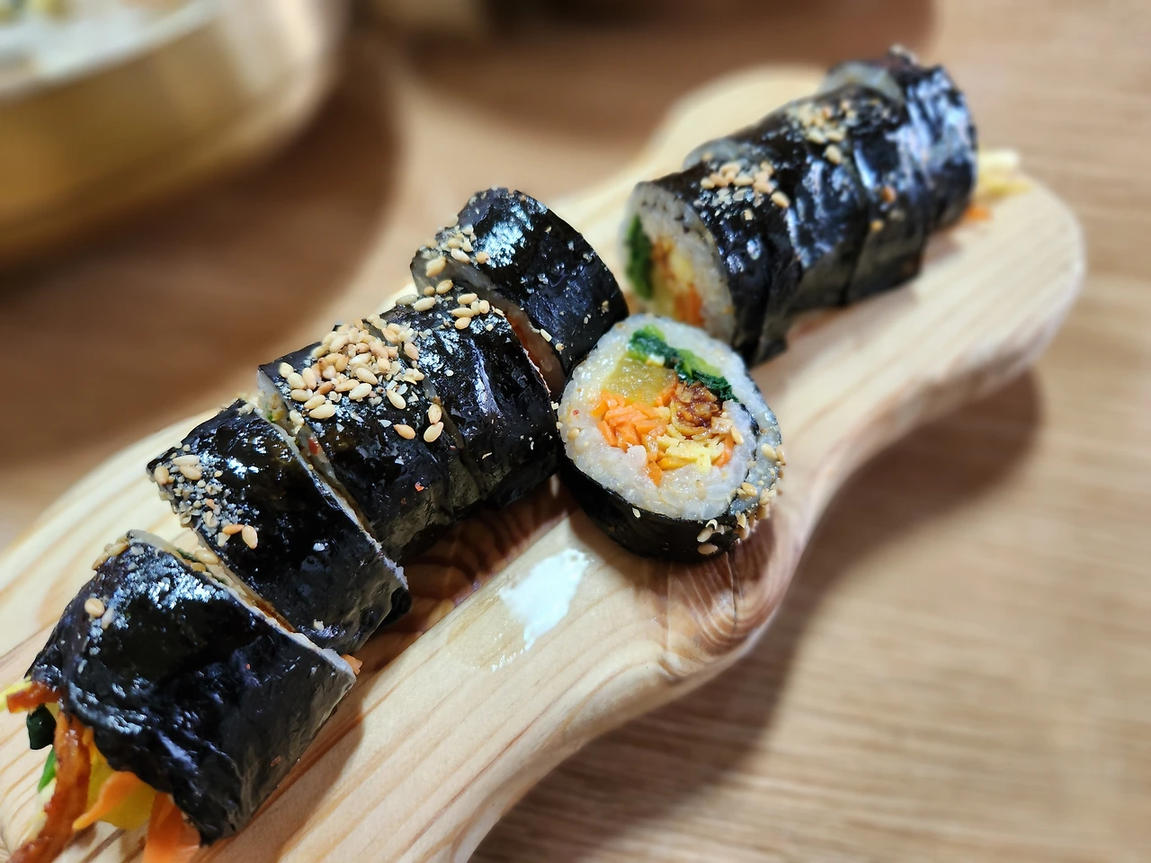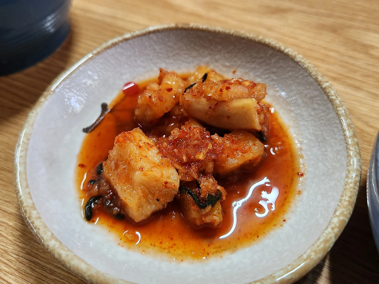 주문한 음식 중에 살짝 아쉬운 메뉴는 바로 매콤김밥. 매운 것을 그다지 좋아하지 않아서 일수도 있지만 사이즈가 조금 작아서 아쉬웠다. 요즘 김밥 다들 3천 원은 하지만 그래도 좀 작다. 맵찔이라 걱정했는데 그까진 아니었다. 적당히 맛있게 매운 매콤김밥이더라.