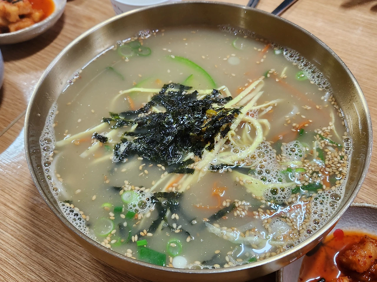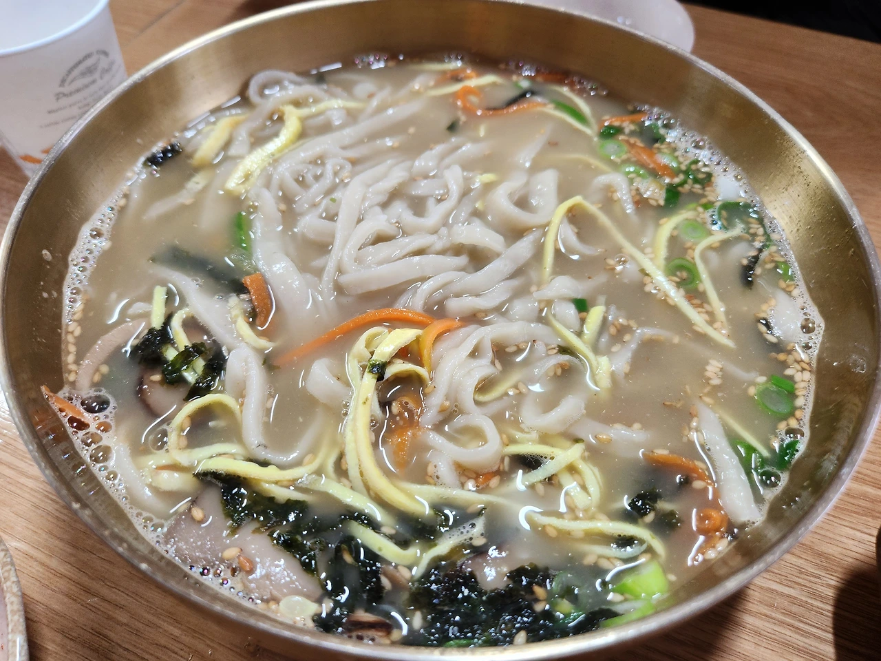 하지만 칼국수가 내 앞에 대령되는 순간 상황은 달라진다. 살짝 거뭇한 국물 빛깔은 상황버섯물을 입증하고 있는 것. 그리고 계란지단과 아낌없이 존재감을 드러내는 당근과 호박, 표고버섯은 건강미를 한층 더한다. 직접 만든 수제만두는 아닌 듯하지만 쫄깃한 식감의 깔끔한 만두 또한 별미다.