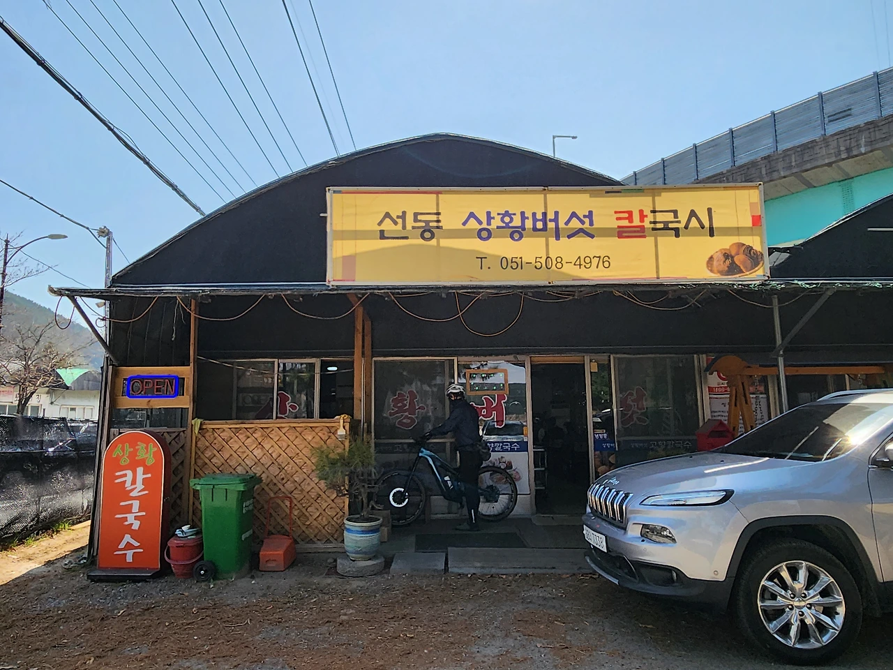 부산 선동을 오며 가며 도로변에 늘 가고 싶었던 집이 하나 있다. 바로 선동 상황버섯 칼국시. 포털에서 검색하면 정식 명칭은 상황버섯칼국수지만 간판은 '선동 상황버섯 칼국시'다. 오늘 가족과 선동 농장에 들렀다 간단한 점심 요기로 이곳을 들렀다. 사장님이 바뀌고 한층 맛이 더 좋아졌다는 소문을 맛으로 확인해야 했기에.