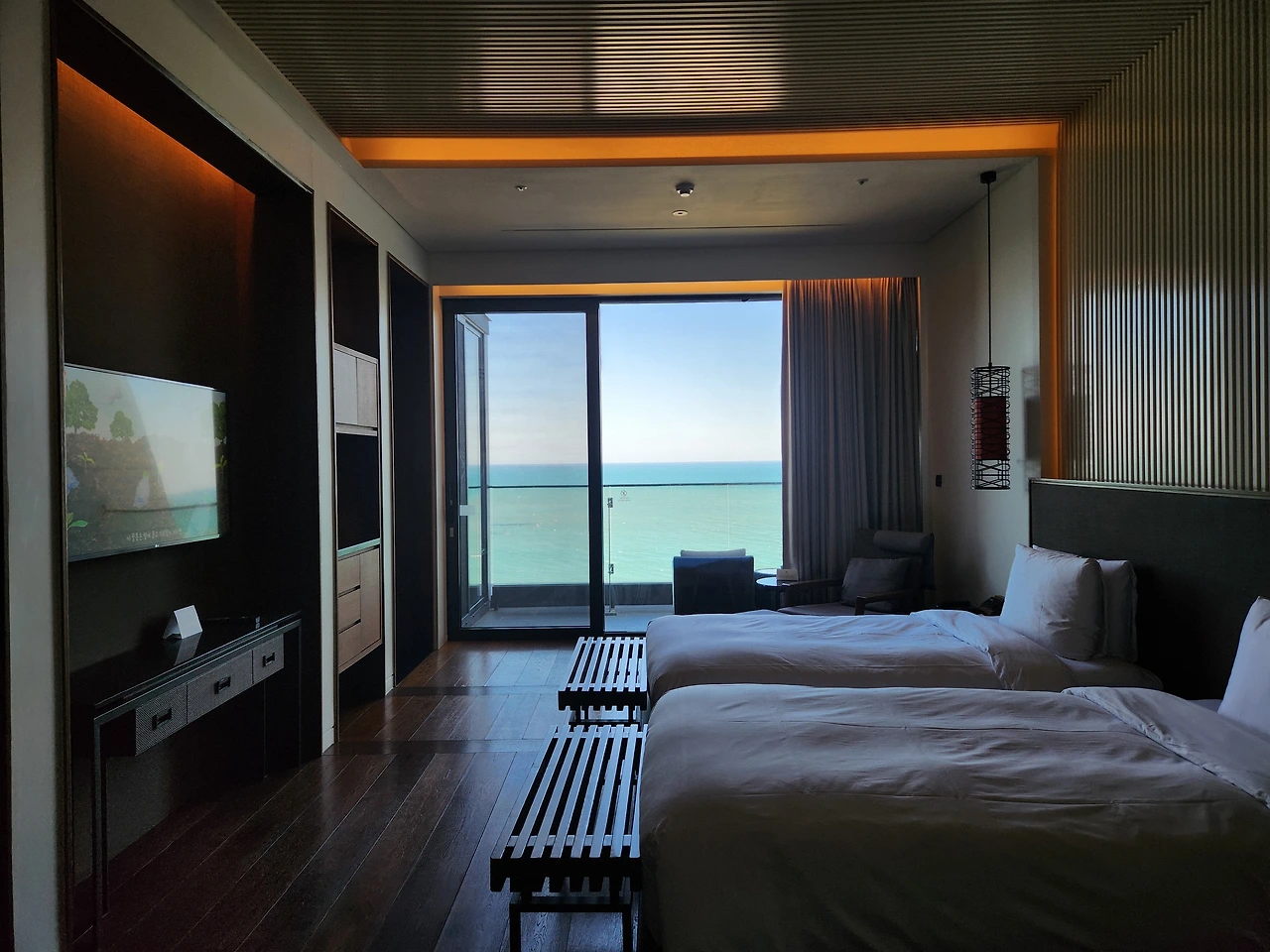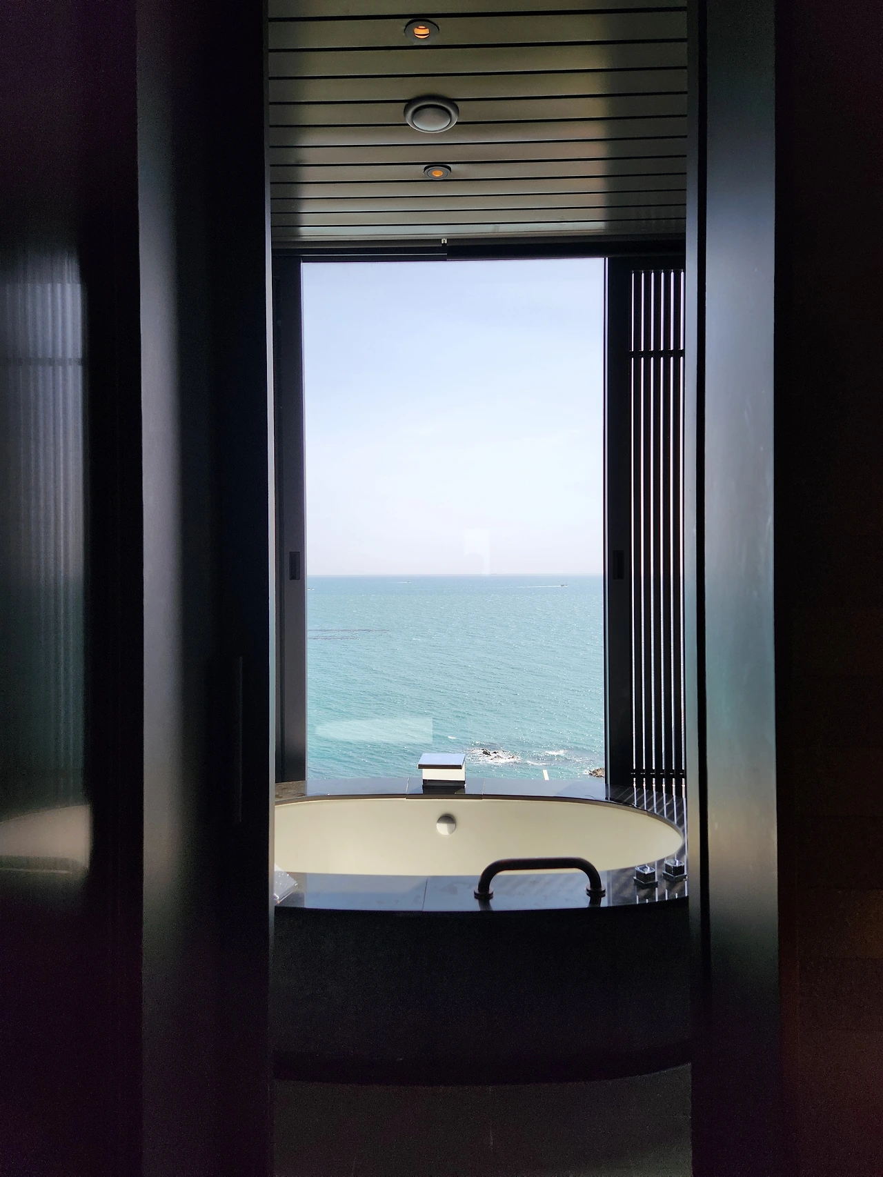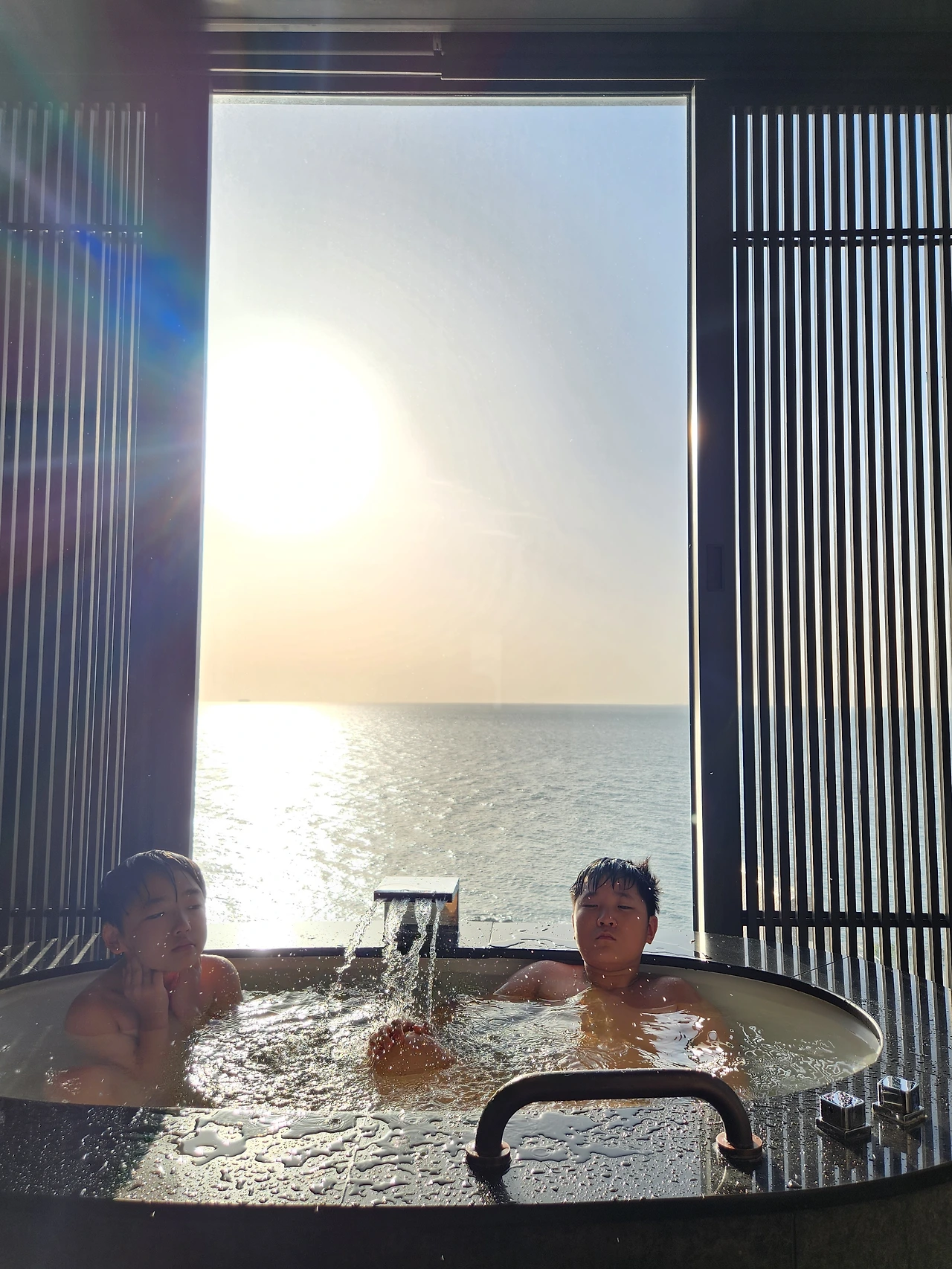 바다 건너 환히 떠오르는 해를 바라보며 아침을 맞았다. 조식은 굳이 생략. 양이 적은 우리 가족은 조식 뷔페의 한 두 접시 아침이 늘 아깝다. 어제 남은 음식으로 속을 달래고 욕조에 물을 받아 아이들의 물놀이를 즐긴다. 그것도 바다를 바라보며.