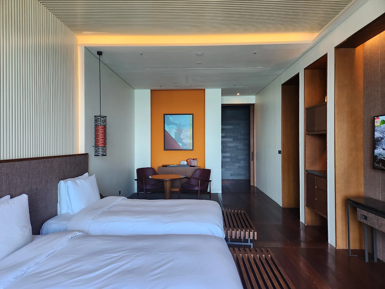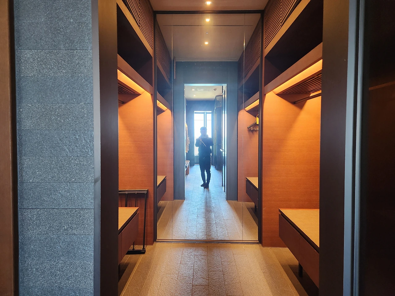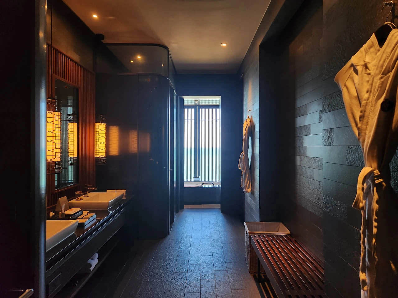 두 가족이라 레지던스 커넥팅으로 예약, 50평 레지던스의 현관이 열린 구조로 이뤄진 타입이다. 100평의 펜트하우스보다 2개의 독립된 레지던스의 조합이 더욱 프라이빗하다. 거실과 룸 일체형과 독립형 두 가지 타입의 레지던스는 욕실의 구조 또한 조금은 다르다.