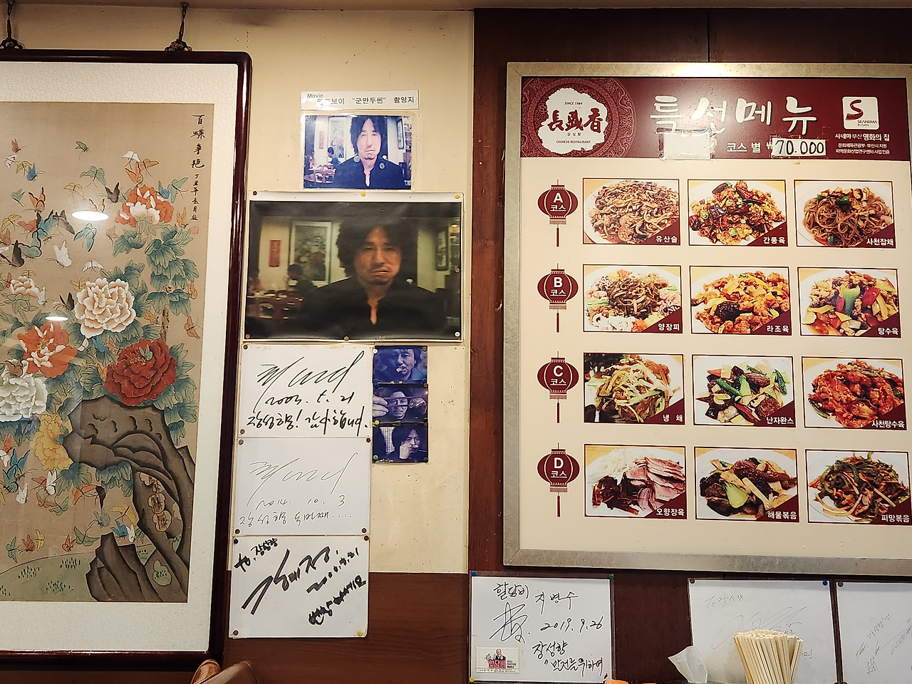 물론 그날도 초량동 차이나타운의 신발원을 향했다. 무지 빠른 걸음으로 도착했지만 오 마이갓! 문을 닫을 시간이었다. 바로 옆 마가만두로 갈까 하다가 고개를 돌린 곳이 장성향. 영화 올드보이 만두로 꽤나 유명세를 탄 집이지만 어쩌다 한 번도 가지 않았던 집이다. 늦은 저녁, 장성향에 들르자 2개 테이블에서 술과 함께 만두를 즐기는 분들이 계셨다.
