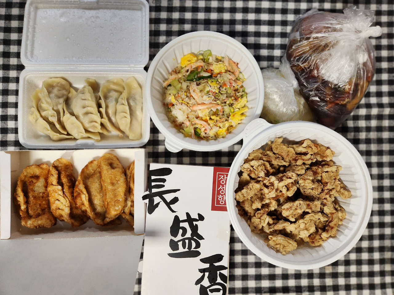 포장을 주문하고 기다리는 동안 갓 튀겨진 군만두를 먹어대는 분들로 입안 가득 침이 고였다. 하지만 참았다. 가족과 함께 먹을 얼마 후의 행복을 위해. 다행히 홀에 사람이 많이 없는 관계로 음식은 생각보다 빨리 포장되었고 그 길로 집으로 냅다 달렸다. 조금이라도 따끈한 상태로 먹고 싶어서.