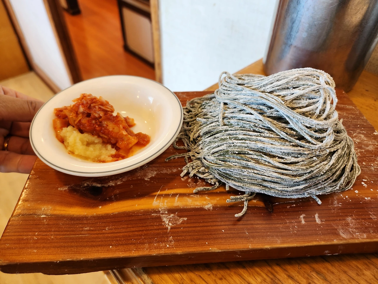 예전보다는 물가 상승으로 오른 가격이겠지만 여기서 조금만 낮았다면 좋았겠다는 아쉬움도 살짝 있었다. 하지만 요즘 점심 비용을 생각하면 이 구성에 이런 퀄리티, 없다. 이것만 먹어도 충분히 배가 부른데 쑥국수가 남았다. (상추쌈은 추가 비용으로 주문 가능하지만 배가 불러 주문 포기) 쑥향 가득히 베어져 나오는 깊은 맛. 면 좋아하는 사람들에겐 색다른 경험을 선사해 줄 요물이다.