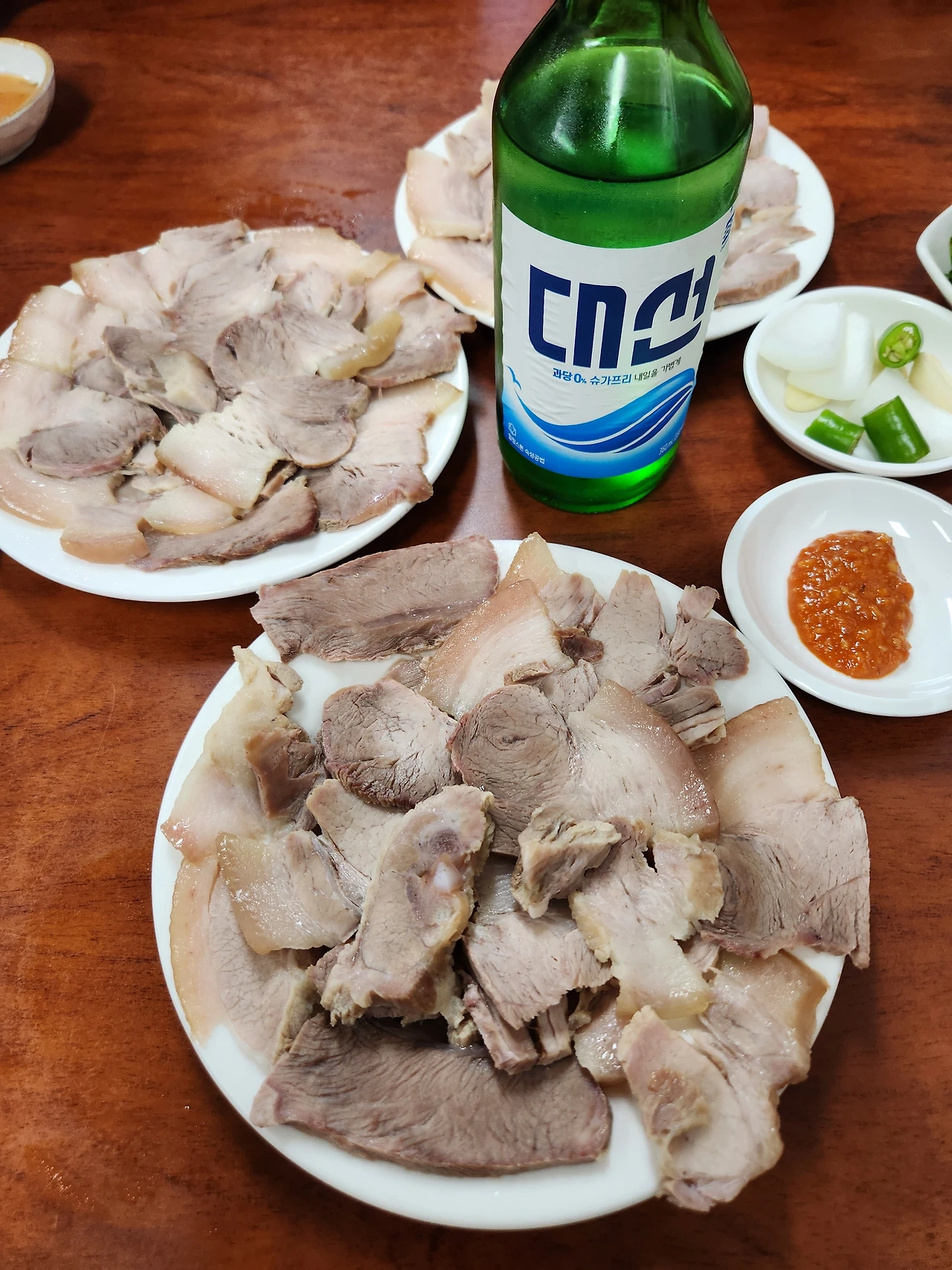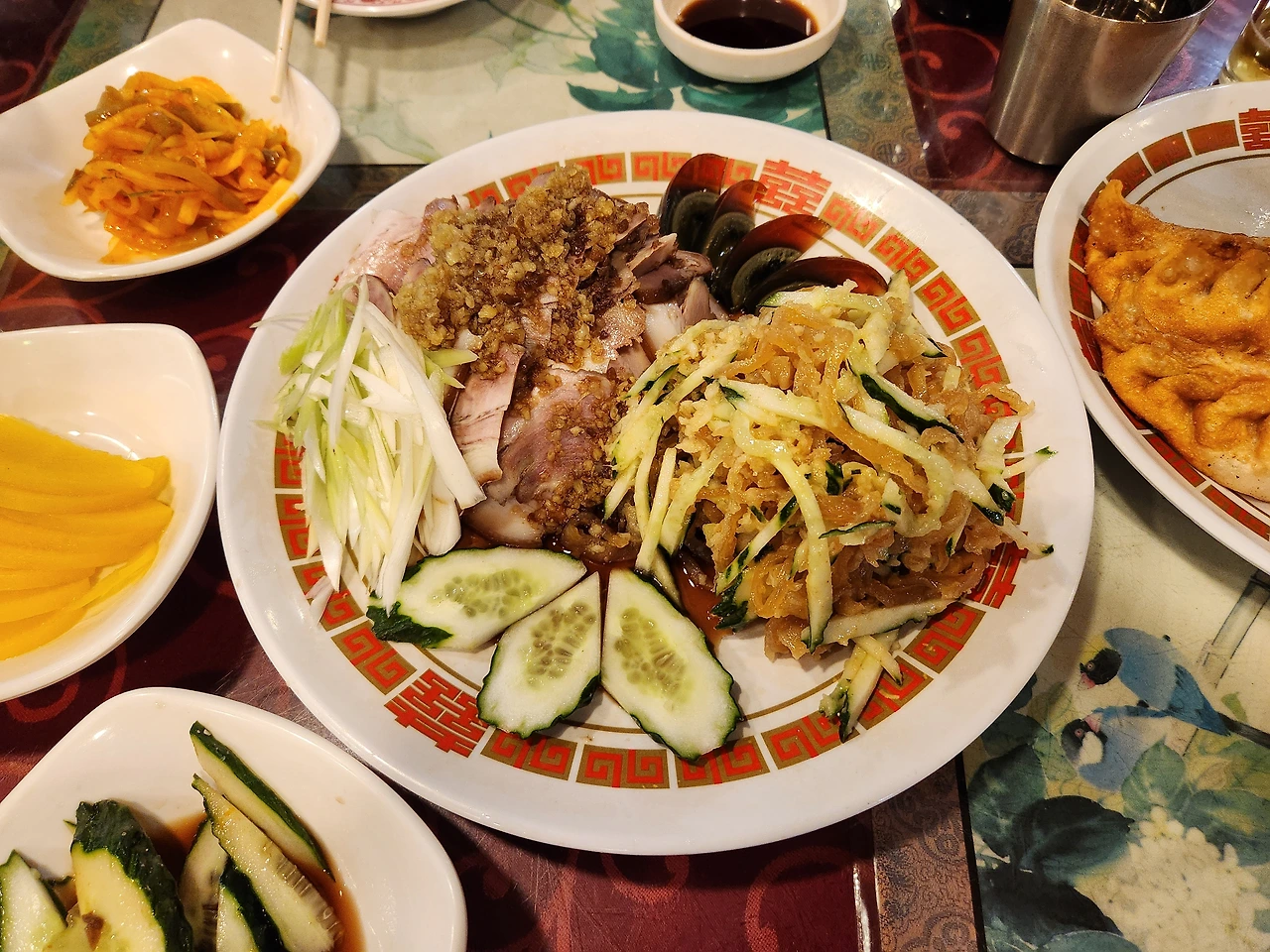 비계와 살이 적절히 조화로운 수육이다. 비계 없는 수육을 주문하는 분도 있었다. 비계를 좋아하지 않는 취향이라면 반드시 비계 없이 해주세요를 외치길. 비계 좋아하지 않는 나도 먹을만한 수육이다. 25년 전 그대로 부드럽고 담백했으며 접시에 투박하게 놓인 그대로의 플레이팅이었다. 그래서 더 정겹고 손이 자주 갔다. 돼지수육의 압권은 바로 겨자와 식초 베이스의 황금 소스다. 비법이 뭔가 싶을 정도로 맛있는 평산옥의 비법 소스다.